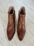 Experience style and comfort. Chic block heel booties in a rich brown. Feature a leather upper and lining. Complemented by a synthetic sole. Equipped with dual side zip entry and a cushioned footbed. Stand on a 3-inch block heel for a perfect balance of height and stability. Crafted from high-quality materials. Run true to size.
