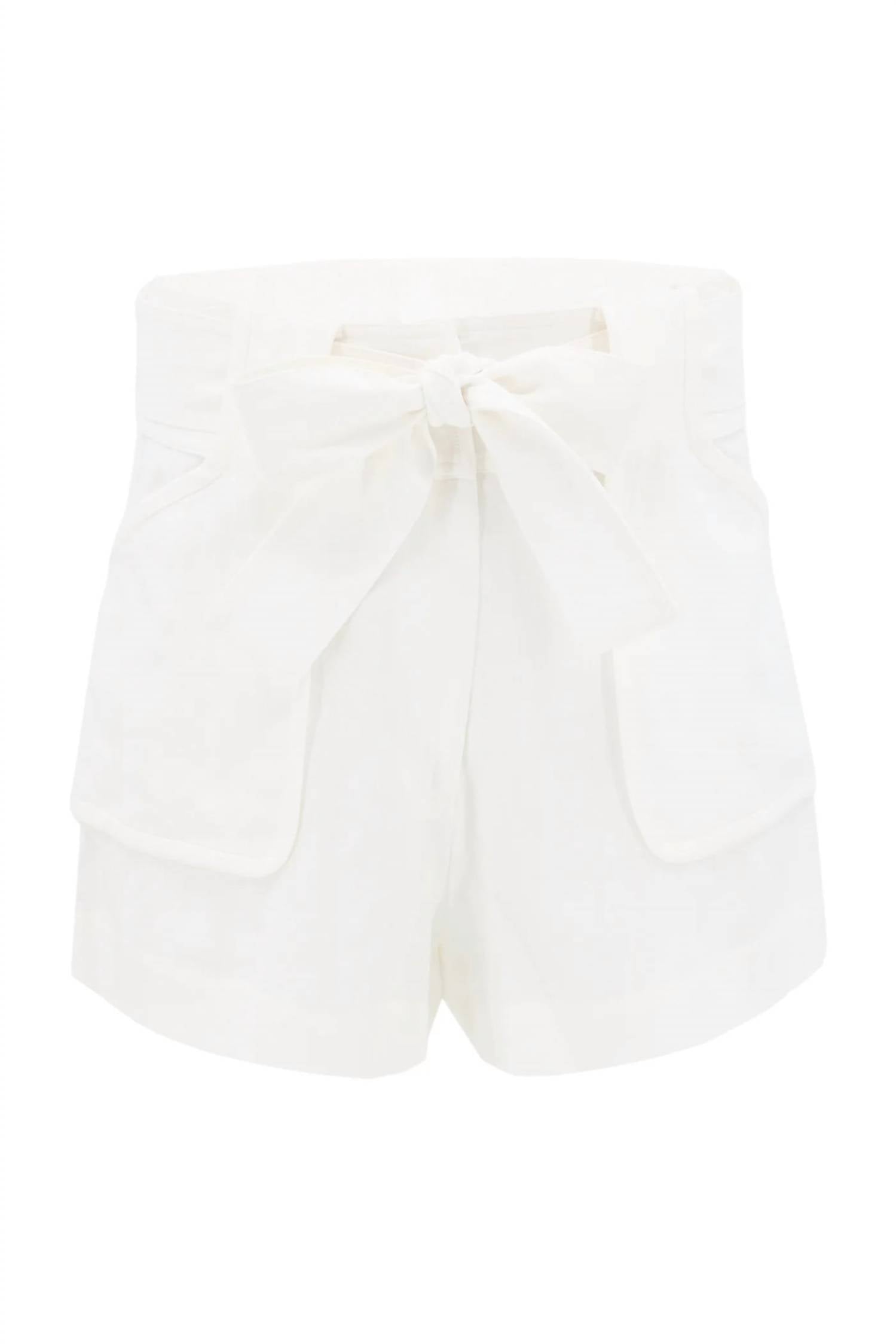 Tuck your favorite tee into these high-waist shorts for a more casual-cool feel. Enhance your summer wardrobe with the Emma Short by CHRISTY LYNN, a perfect blend of sophistication and comfort in solid white. This high-waisted short features a convenient pull-on style, highlighted by a patch pocket detail and a self-tie fabric belt. Composition: Cotton/Linen blend. Care: Dry clean only.