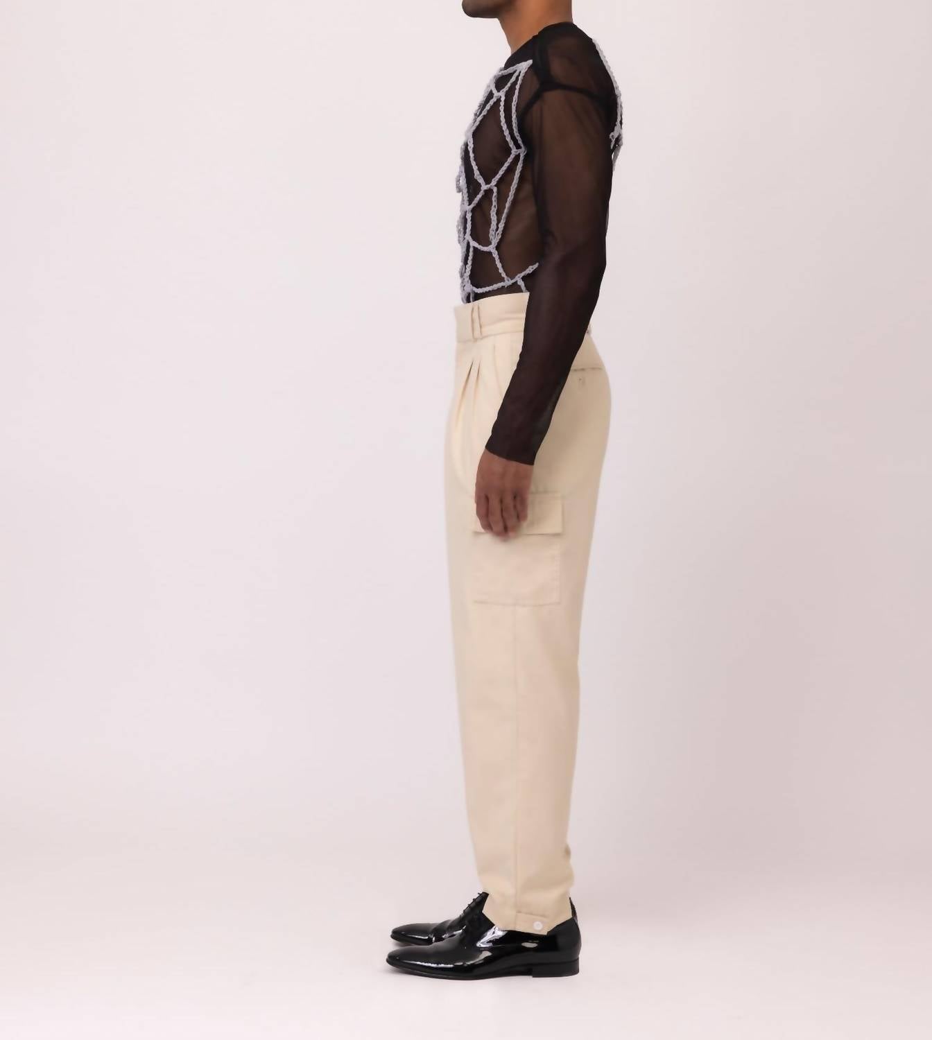 Designed for creative streetwear looks. With its long sleeves and classic crewneck. Combines a sheer bodice with sustainable mesh and crocheted wool knitting. Featuring a pull-on closure, perfect for making a statement at any fall holiday party. Hand wash recommended.