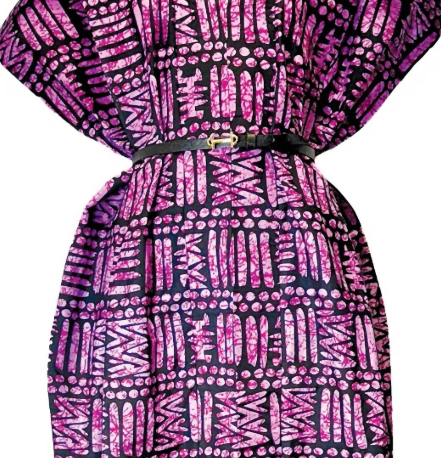 The perfect length dress does exist. Embrace elegance with the Women's Fringe Midi Dress by Chuks Collins, a captivating piece in a purple print designed to make a statement. This kaftan silhouette features cap sleeves and a V-neck, coupled with playful fringe detailing below the knee. Crafted from a comfortable 80% Cotton 20% Silk blend, this pull-on dress is made in the USA and perfect for special occasions. Care: Machine wash.