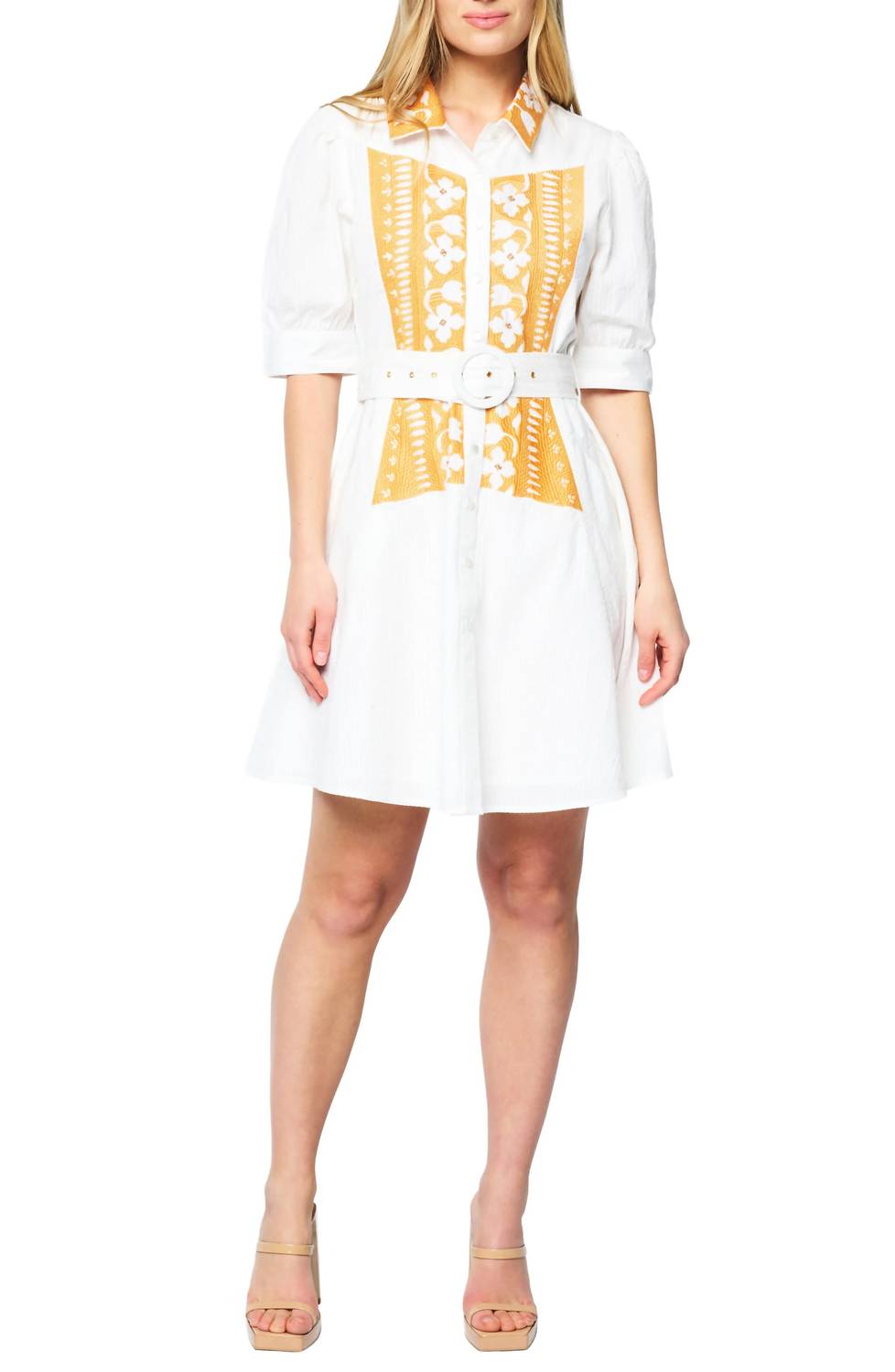 The kind of easy and flattering dress you'll be reaching for all season long. Elevate your summer wardrobe with the CIEBON Embroidered Shirt Dress in vibrant orange and white. This women's mini dress is crafted from textured cotton, featuring short sleeves and a classic collar for a nod to 90s fashion. Designed without pockets for a sleek silhouette, it closes with buttons and is perfect for a vacation outing. Care is easy with hand wash and lay flat to dry instructions.