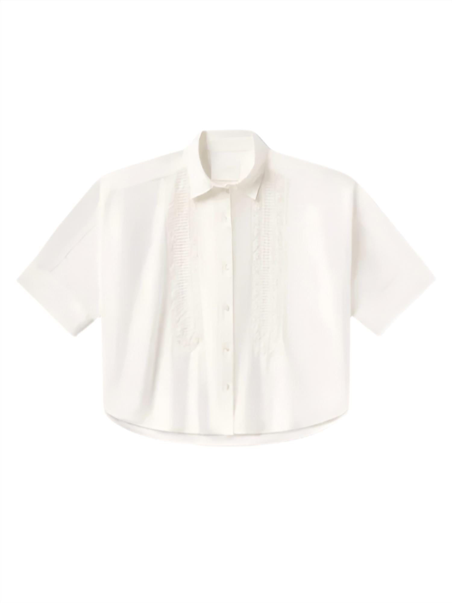 Perfectly tailored and soft to the touch. Introducing the Claire Laced Shirt by Citizens of Humanity, a chic addition to your wardrobe that embodies quiet luxury. Featuring elbow-length oversized sleeves and a classic pointed collar, this piece is made from a premium cotton and silk blend, offering a perfect balance of softness and durability. This imported button-down shirt in a versatile solid white is ideal for summer occasions. Elevate your style with its effortless elegance, perfect for church or Thanksgiving gatherings.