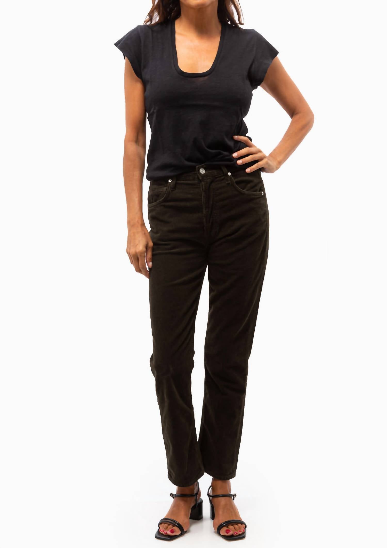 Designed with a high-rise and slim-leg silhouette, an ultra-flattering and versatile combination. Crafted from comfort stretch denim with an authentic vintage appeal. Fit is true to size. Closure: Button Fly. Rise: 11 1/2". Inseam: 27". Leg Opening: 14". Model is 5'10" and is wearing a Size 27. Machine wash cold.