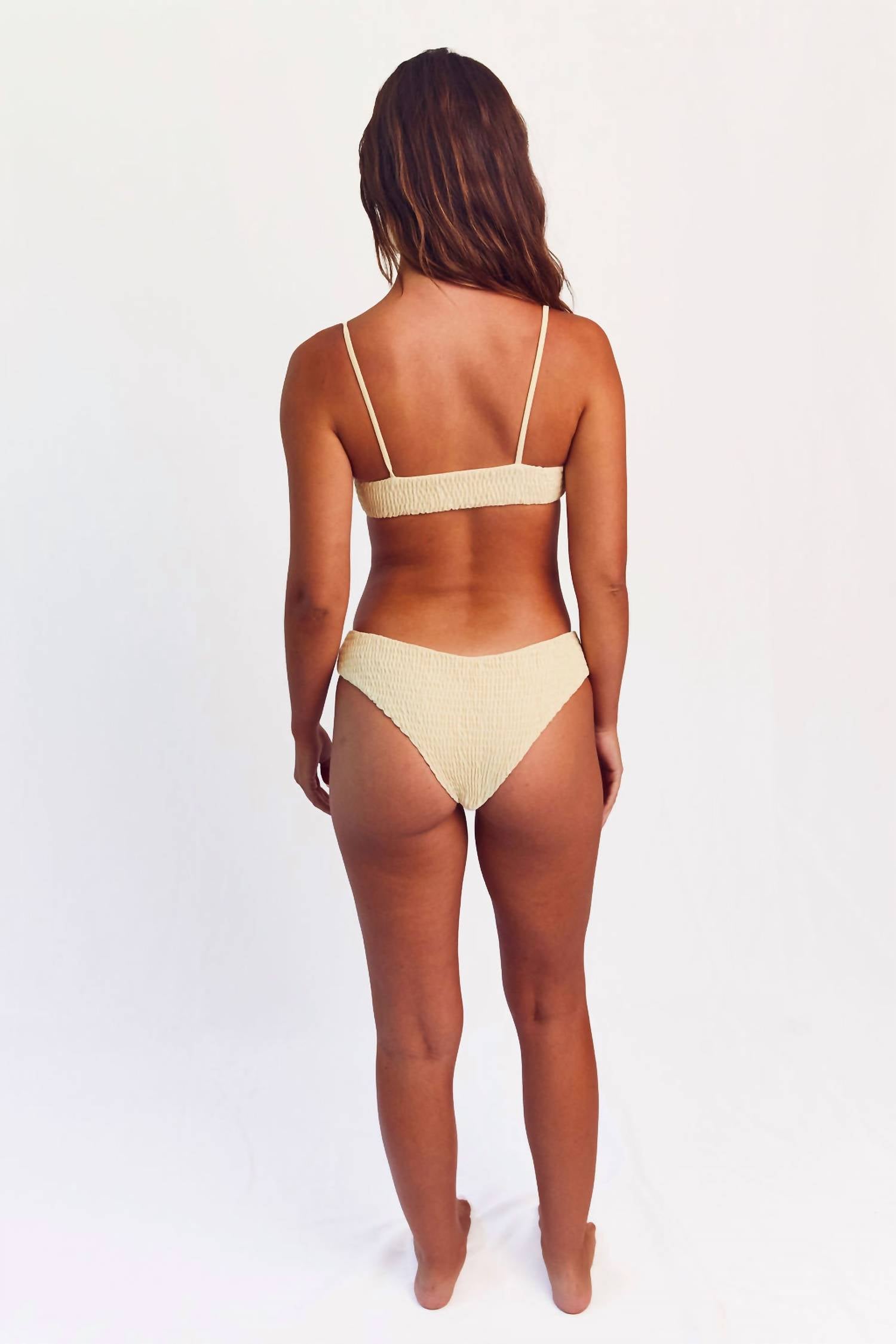This cute and flattering swimsuit is perfect for making a splash at the pool, lounging on sun-kissed beaches, and staying stylish throughout the upcoming summer season. Unveil effortless style with the Lila Bottoms by CITRINE, a cheeky swim bottom in a chic bone color. Made from an 82% nylon, 18% spandex blend, this bikini bottom features a smocked design for a flattering fit that can be worn high or low on the hips. Ideal for summer beach days, this solid pattern piece offers mid coverage with a slight curve in front and back. Care for it with a hand wash in cold water and lay flat to dry.
