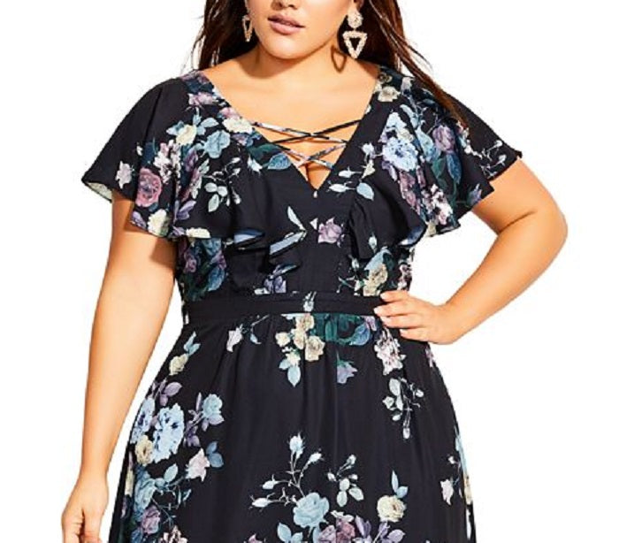 City Chic Women's Plus Blooms Maxi Dress Black Size 18W