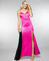 Approx. 62" long from center back neck to hem. Length varies 1/4" between sizes|V-neck|Back zipper closure|Allover satin; bra cups; lace at back; front side slit|IMPORTANT NOTE: This item arrives with a return tag attached and instructions for removal. Once the tag is removed from the dress, this item cannot be returned.