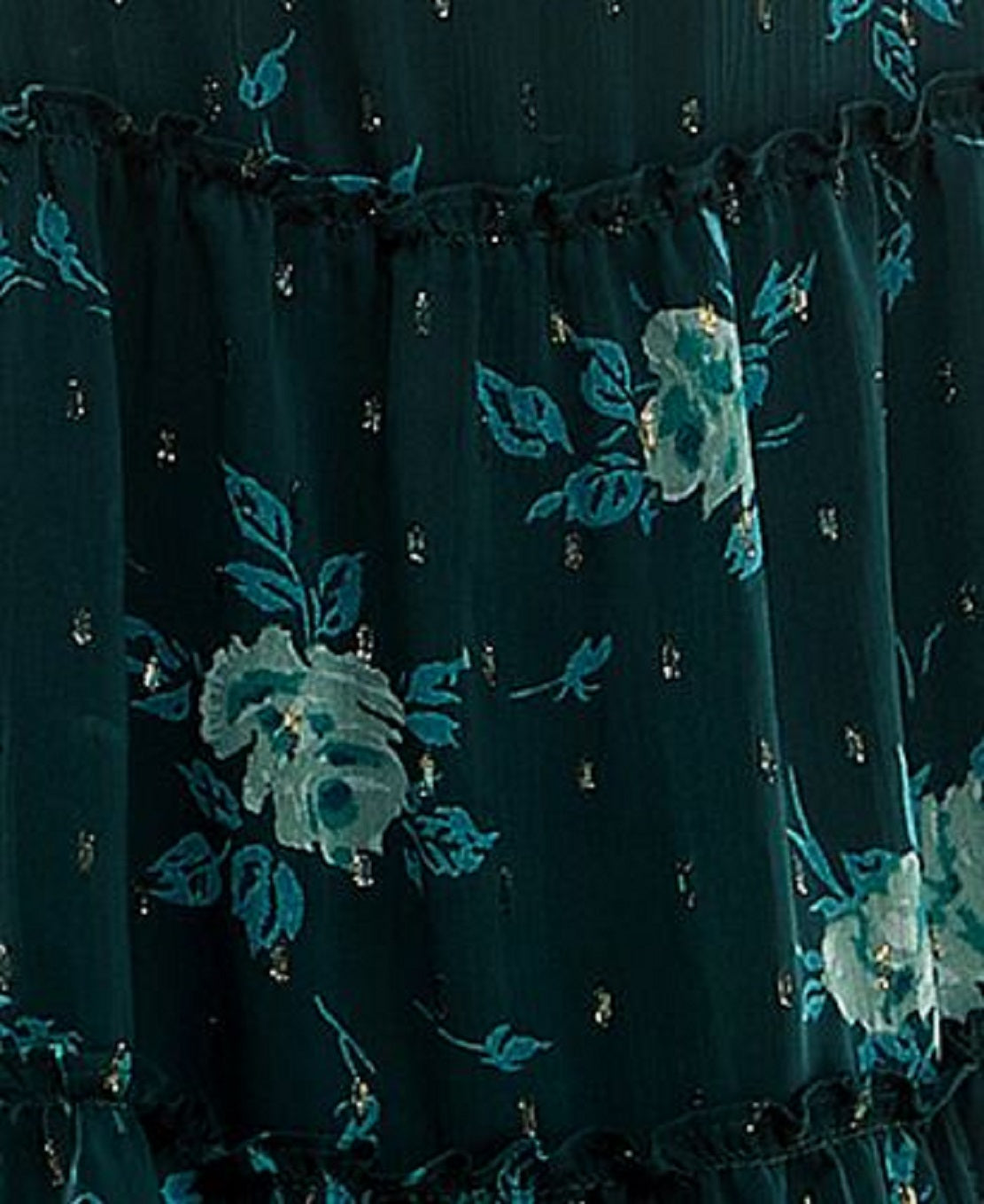 City Studios Junior's Surplice Neck Metallic Fit & Flare Dress Green Size Small