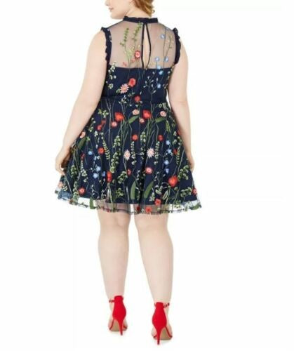 City Studios Women's Trendy Plus Floral Embroidered Dress Navy Size 20W