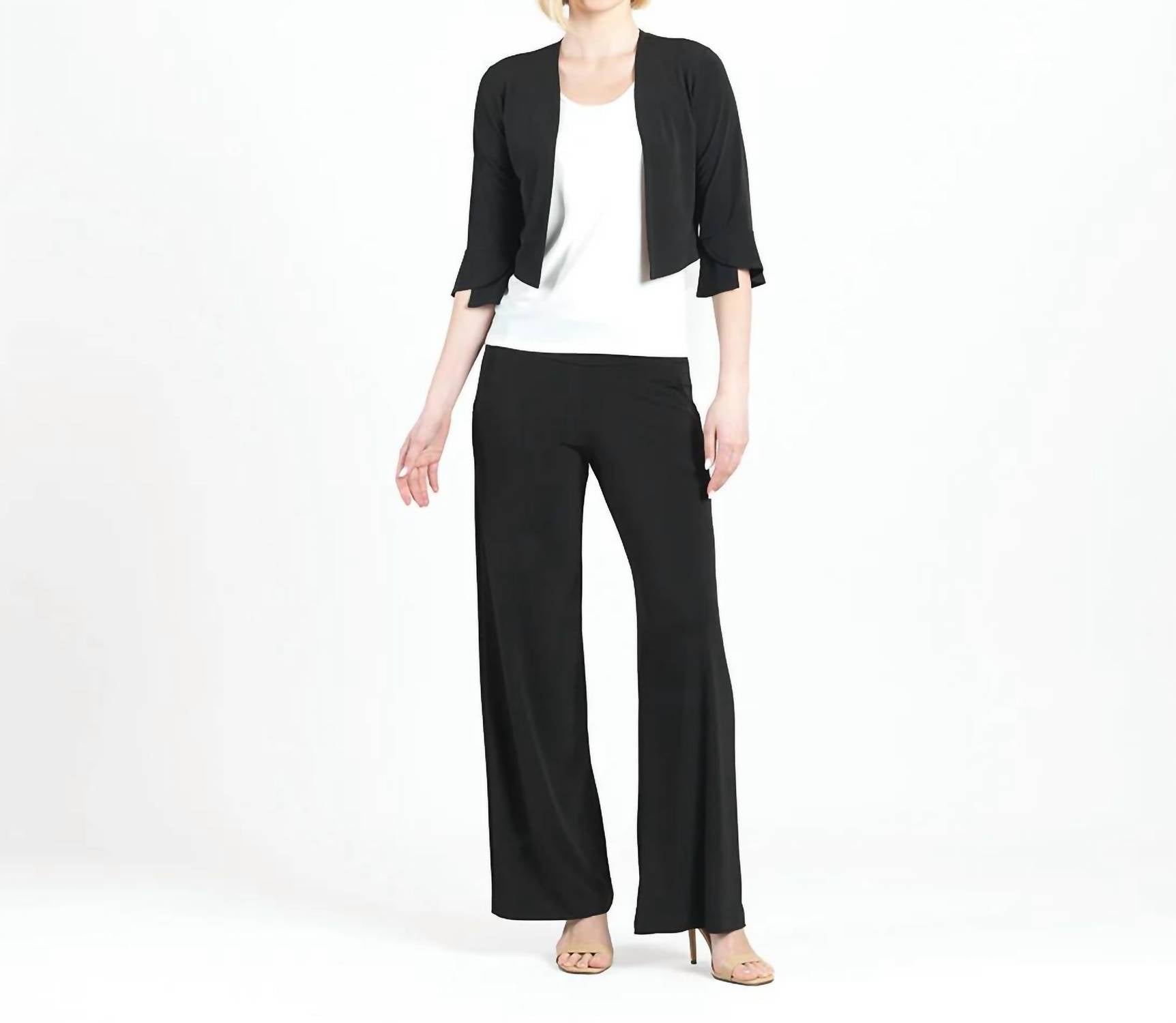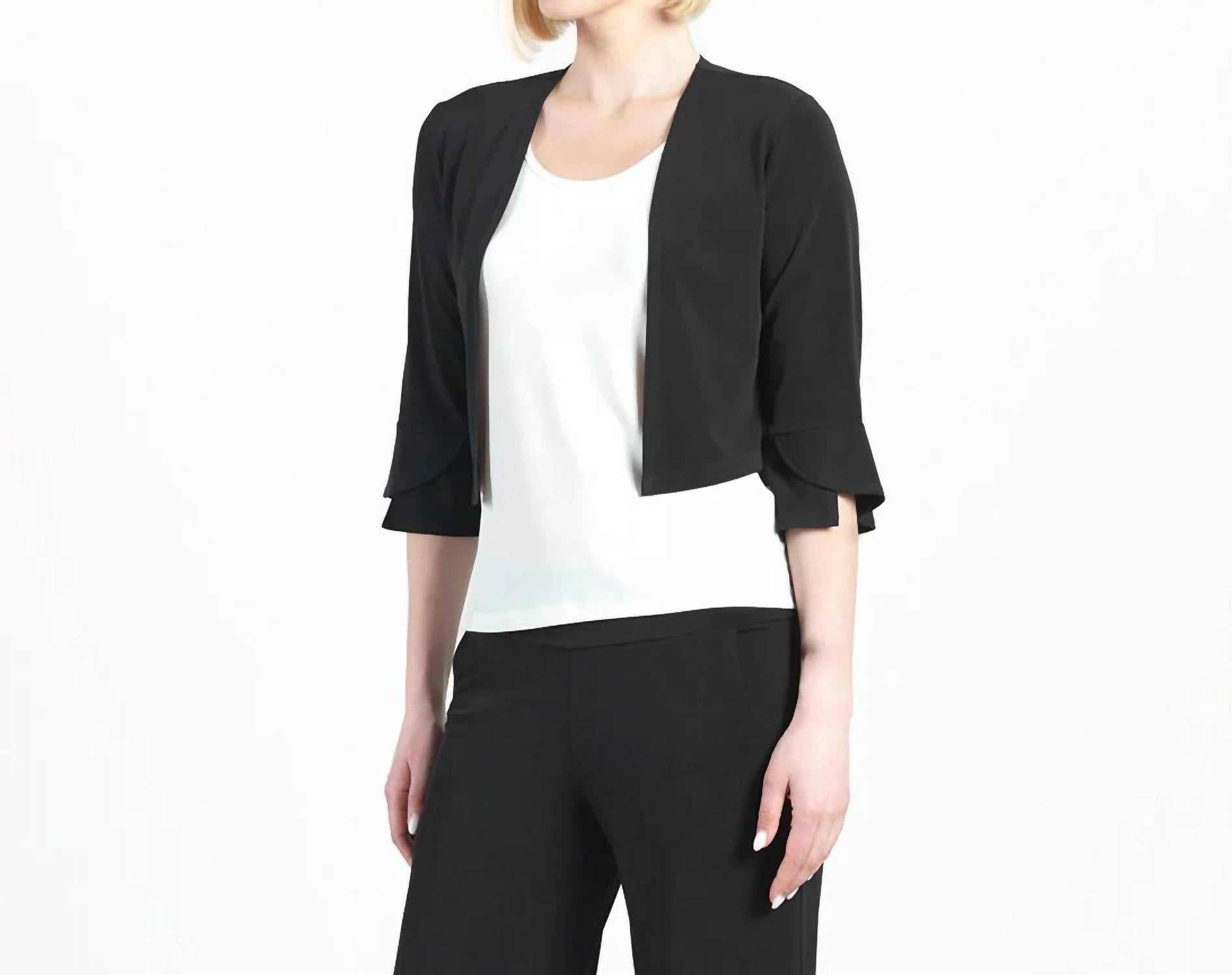Chic cardigan features three-quarter vented tulip cuff sleeves with a cropped hem silhouette. Crafted from wrinkle-free, ultra-lightweight polyester. Designed for comfort and easy care. Hand wash in cold water or machine wash on a gentle cycle; hang to dry.