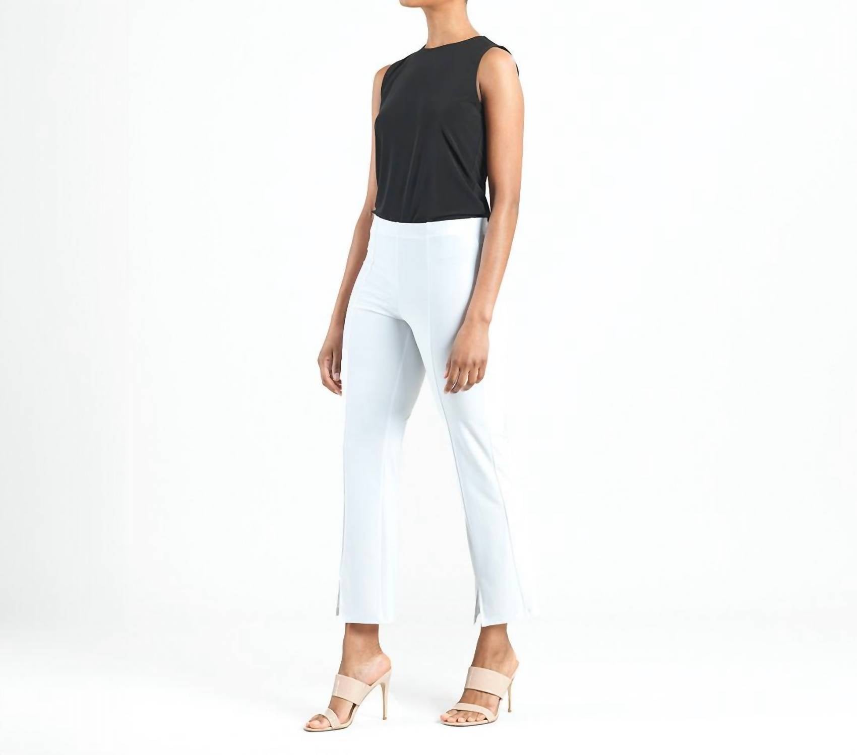 Stay on-trend and showcase your impeccable taste with these adaptable and stylish cropped pants. The perfect length to wear with your favorite mules. You'll love the fit! These lightweight pants are crafted from a soft, wrinkle-free poly blend that's perfect for travel and everyday wear. Designed with a 1" elastic waistband, front slits for added movement, and a center seam detail, they offer a breathable, jersey-like feel that keeps you cool and comfortable on the go.