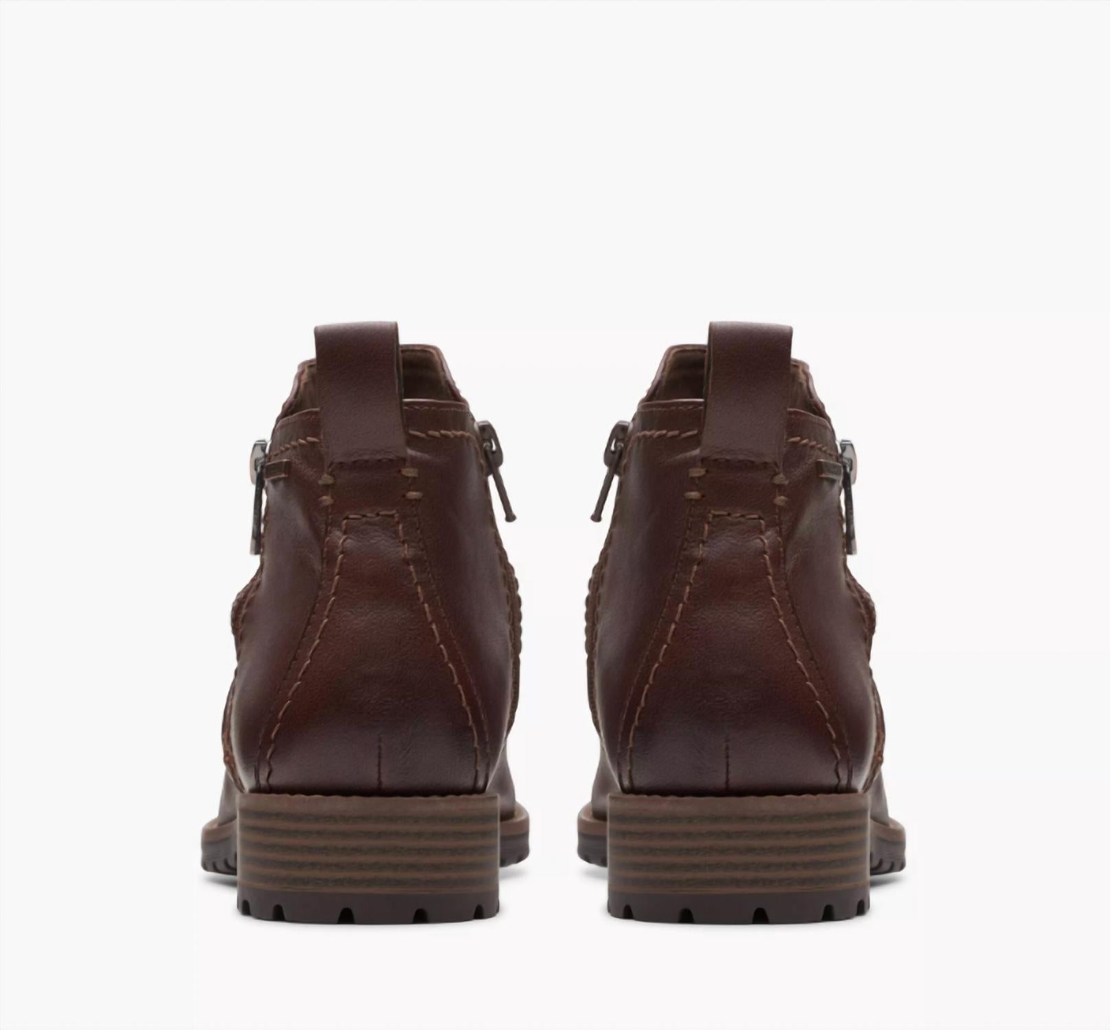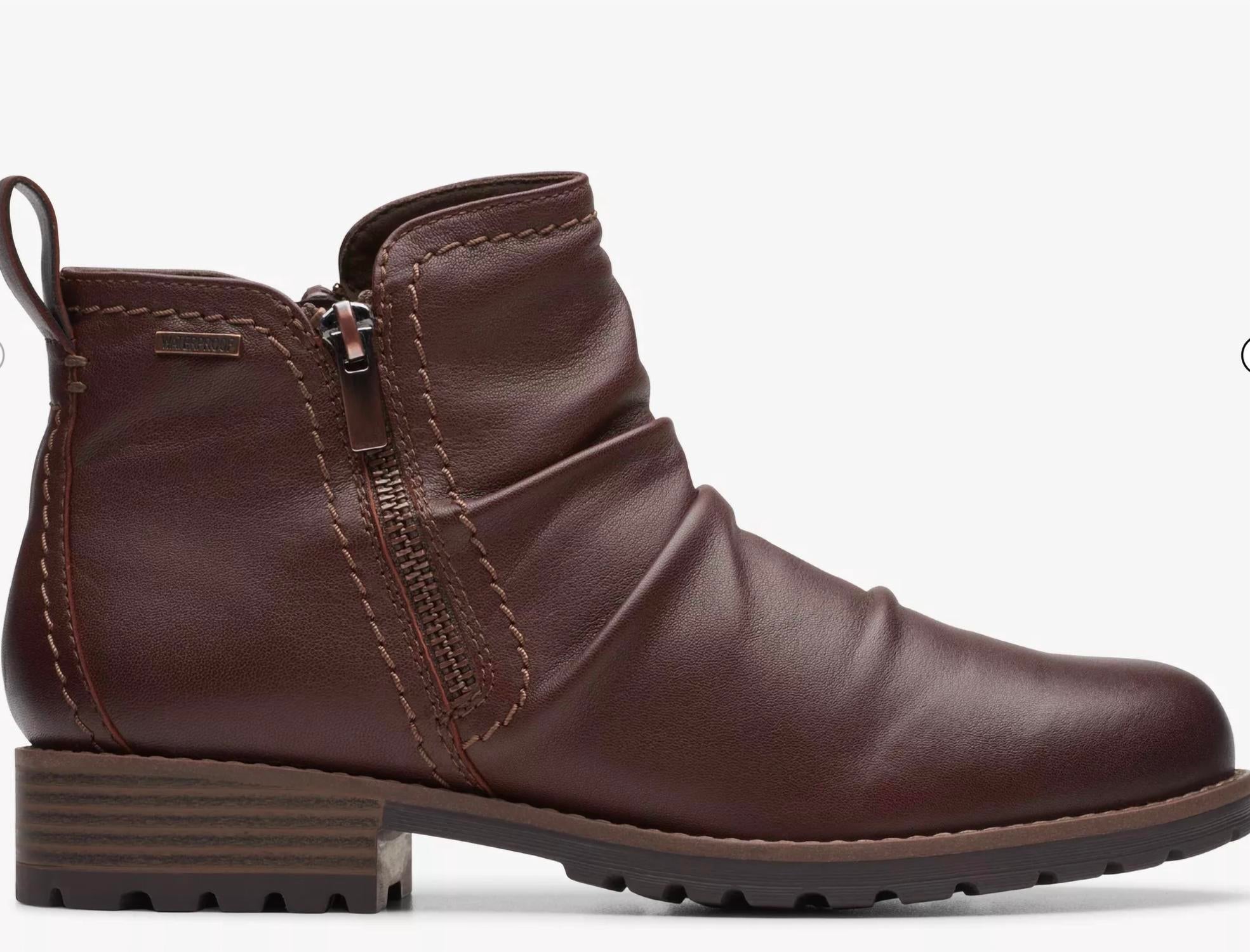 Rainboots so cute, you'll want to wear these even on the lightest drizzle days. Step into winter with the Women's Aspra Waterproof Boot by Clarks, crafted from durable British tan leather. These ankle boots boast a zip-up closure and a grippy TPR rubber outsole, providing steady footing in frosty conditions. Designed with a 30mm (1.18 inches) heel height, they feature a cushioned PU foam footbed for comfort and an antimicrobial lining for freshness. Ideal for pairing with denim or dresses, they keep your steps stylish and supported.