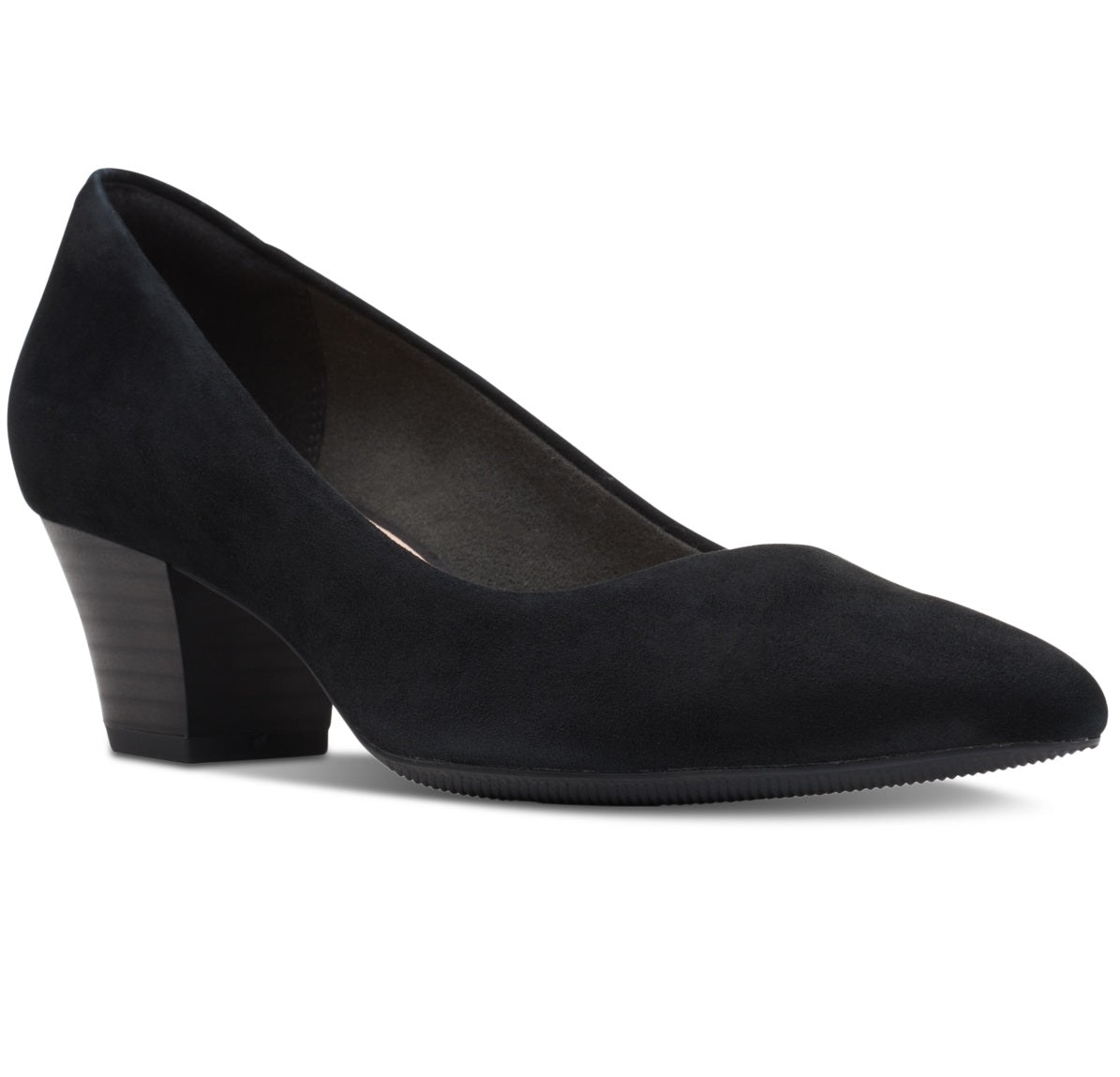 2 block heel|Pointed-toe slip-on pumps|Signature cushioning| cushioned insole and flexible sole for added comfort|Suede upper; fabric lining; manmade sole|Imported