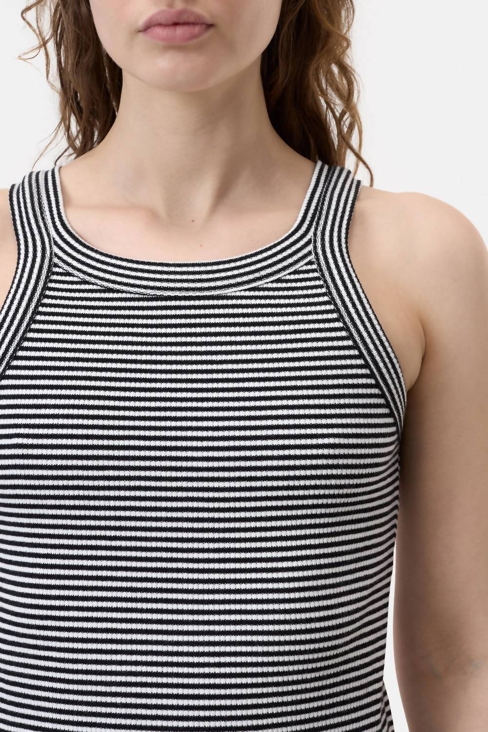 This classic tank top is perfect for layering and cute enough to wear on its own. The Women's Racer Tank Top by CLOSED features a sleeveless, slim-fit design with classic ivory and black stripes. Crafted from 95% organic cotton and 5% elastane, this tank offers superior comfort and flexibility. Made in Turkey, it showcases meticulous craftsmanship with a scoopneck and pull-on closure. Care is simple with machine wash instructions, making it an easy addition to your spring streetwear and vacation wardrobe. Length measures approximately 61 cm / 24.0" for a size S.