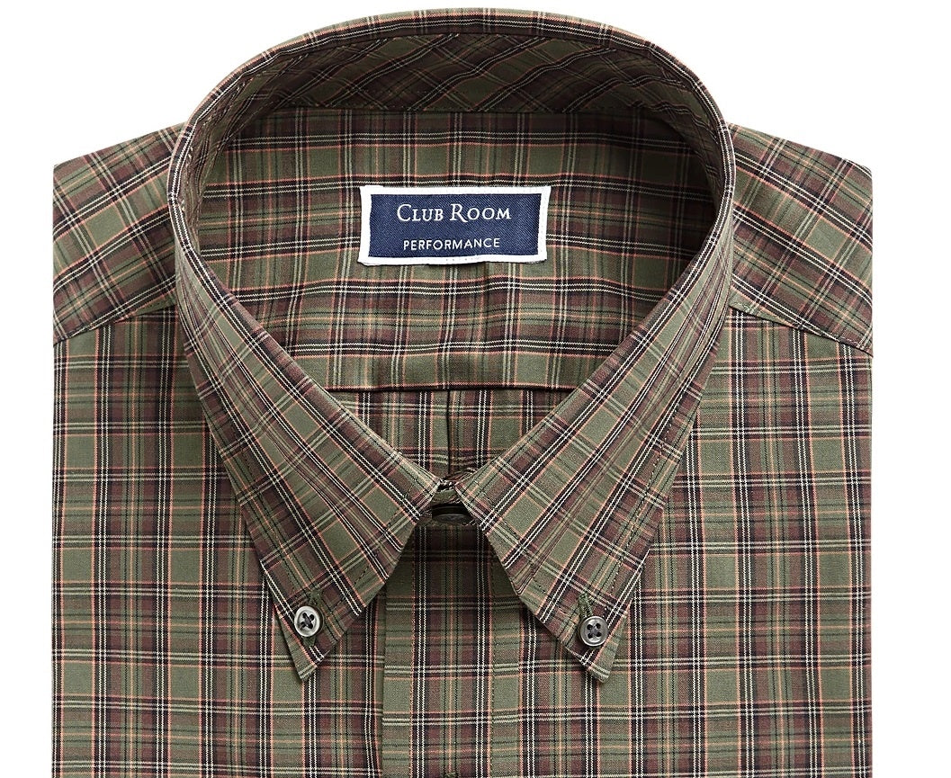 Club Room Men's Gordon Plaid Long Sleeves Dress Shirt Green Size 18.5X34-35