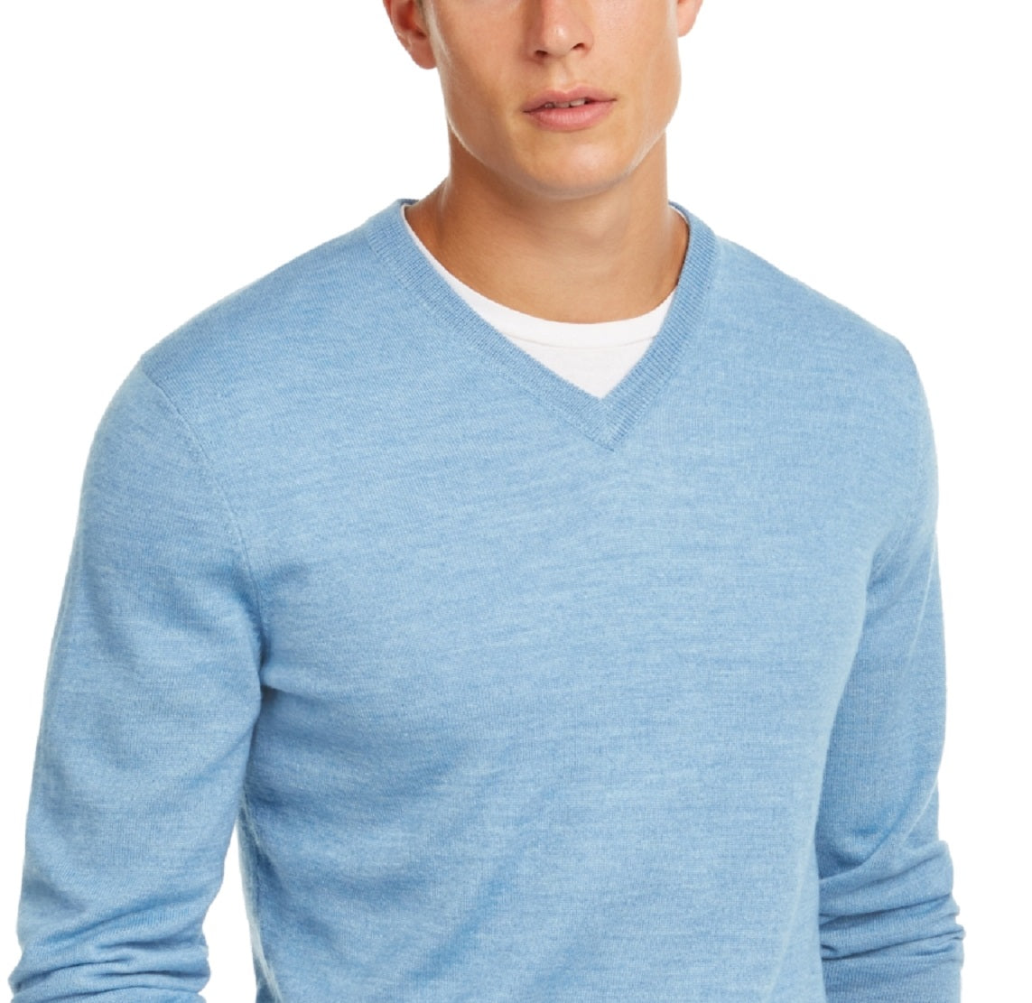 Club Room Men's Solid V Neck Merino Wool Blend Sweater Blue Size X-Large