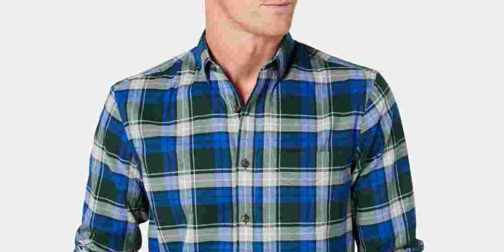 Club Room Men's Stretch Plaid Shirt Green Size Medium