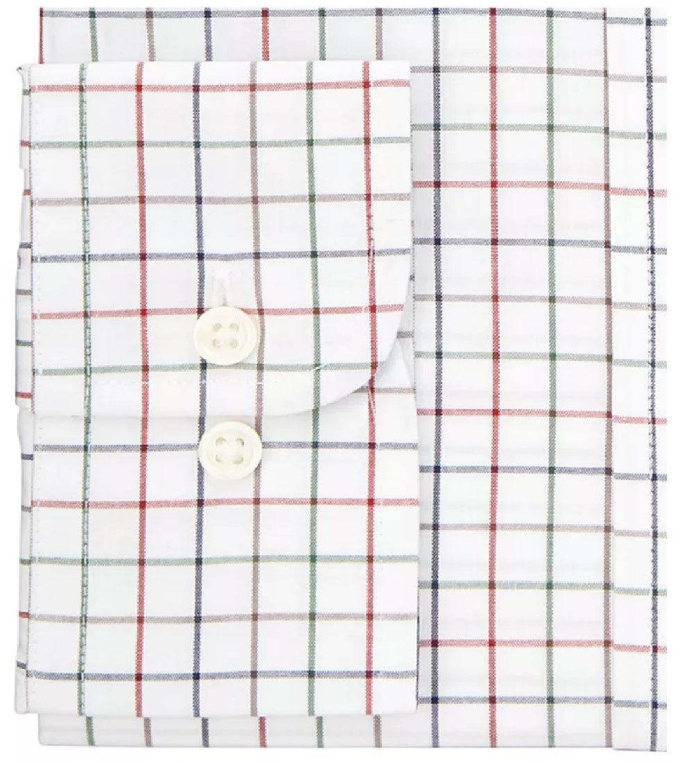 Club Room Men's Stretch Tattersall Dress Shirt White Size 16x34-35
