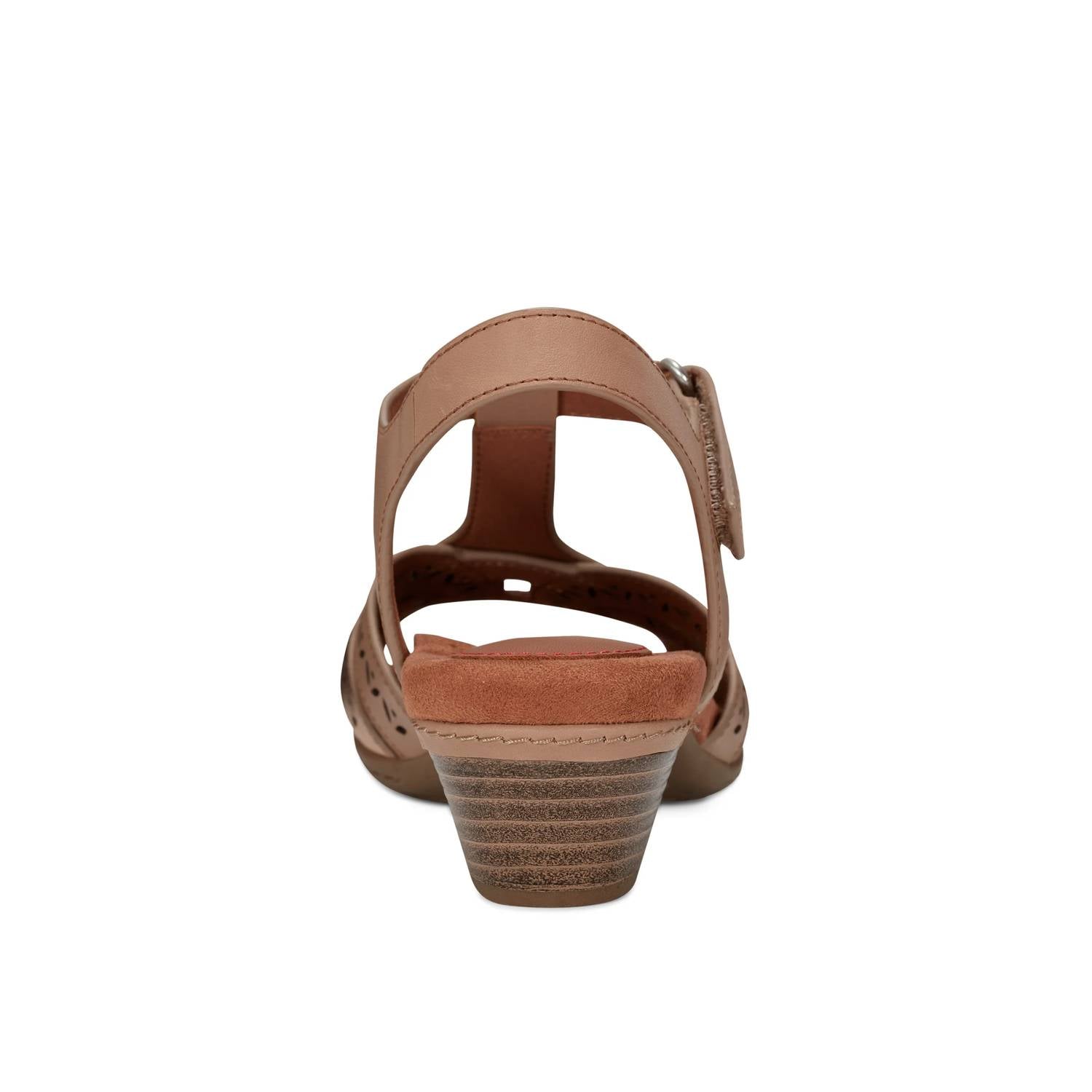 Flowy dresses, cropped pants, and even jumpsuits... this sandal works with them all! Introducing the Lorna Heeled Sandals by Cobb Hill, designed for women seeking comfort and style in taupe leather. These sandals feature a luxurious leather upper, a soft textile lining, and a PU footbed with a cushioned sock for superior support. The hook-and-loop strap closure ensures a secure fit, while the open-toe design and rubber outsole offer excellent traction and flexibility. With a heel height of 1 6/7 inches, they are perfect for all-day wear.