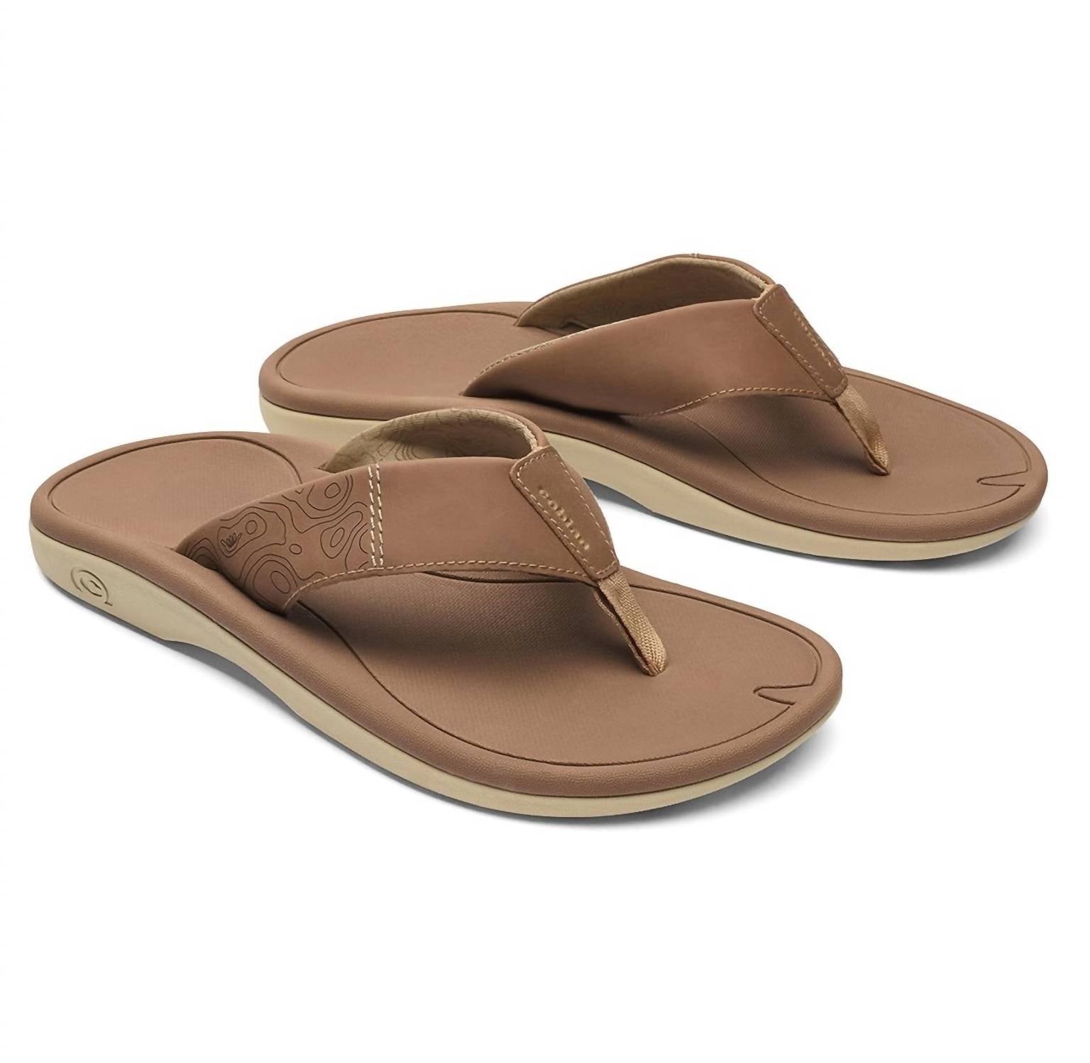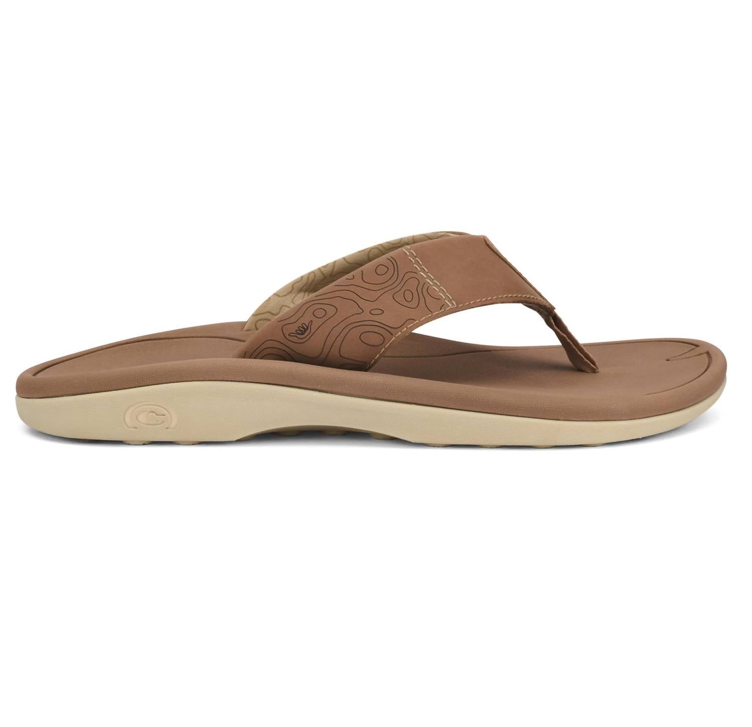 Introducing the Men's Sumo Terra Flip-Flops by Cobian, crafted for comfort and style. These tan flip-flops feature a synthetic strap with printed, padded jersey lining and offer contrast stitching with a debossed topography detail for added appeal. The sporty design boasts an anatomically molded footbed for superior comfort, while the molded outsole ensures reliable grip with its debossed topography pattern. Perfect for the adult male looking for casual, open-toe footwear.