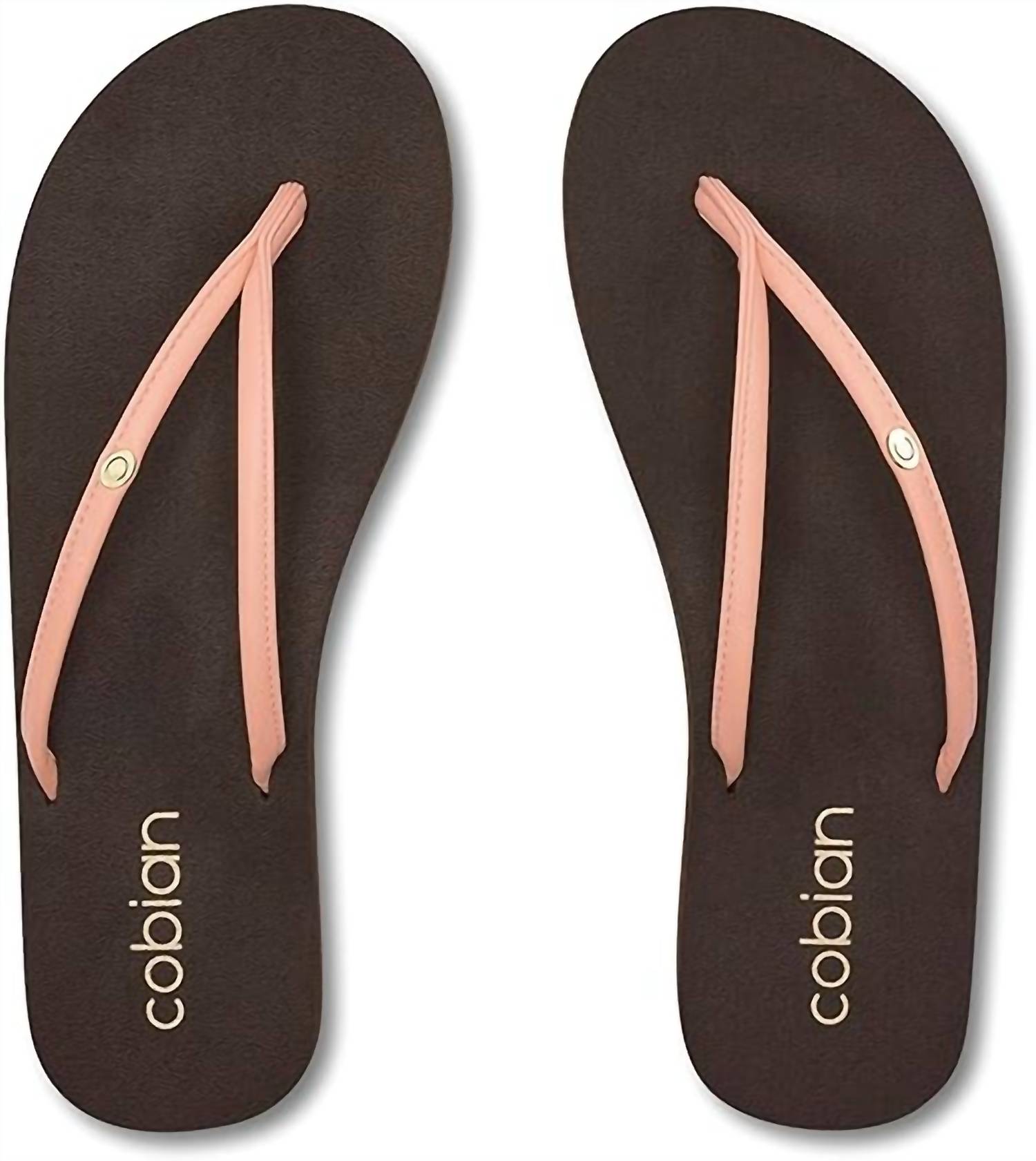 This sandal will take you from brunch to dinner and everything in between. Discover the Women's Nias Bounce Sandal by Cobian, crafted for unparalleled comfort and style in a chic rose hue. Featuring a skinny synthetic leather strap, this sandal is designed with a soft, low-profile EVA top sole providing full arch support for all-day comfort. It boasts a flat heel height and an open toe shape, ensuring both stability and style. Enhanced with a custom Cobian® EVA outsole and a sleek metal surftique logo detail, this sandal is perfect for adding a sophisticated touch to any warm-weather outfit.
