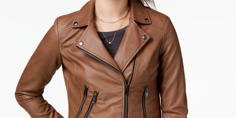 Coffeeshop Juniors' Faux-Leather Moto Jacket Beige Size Large