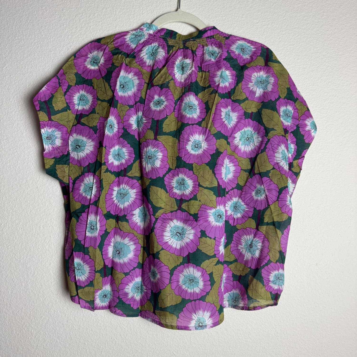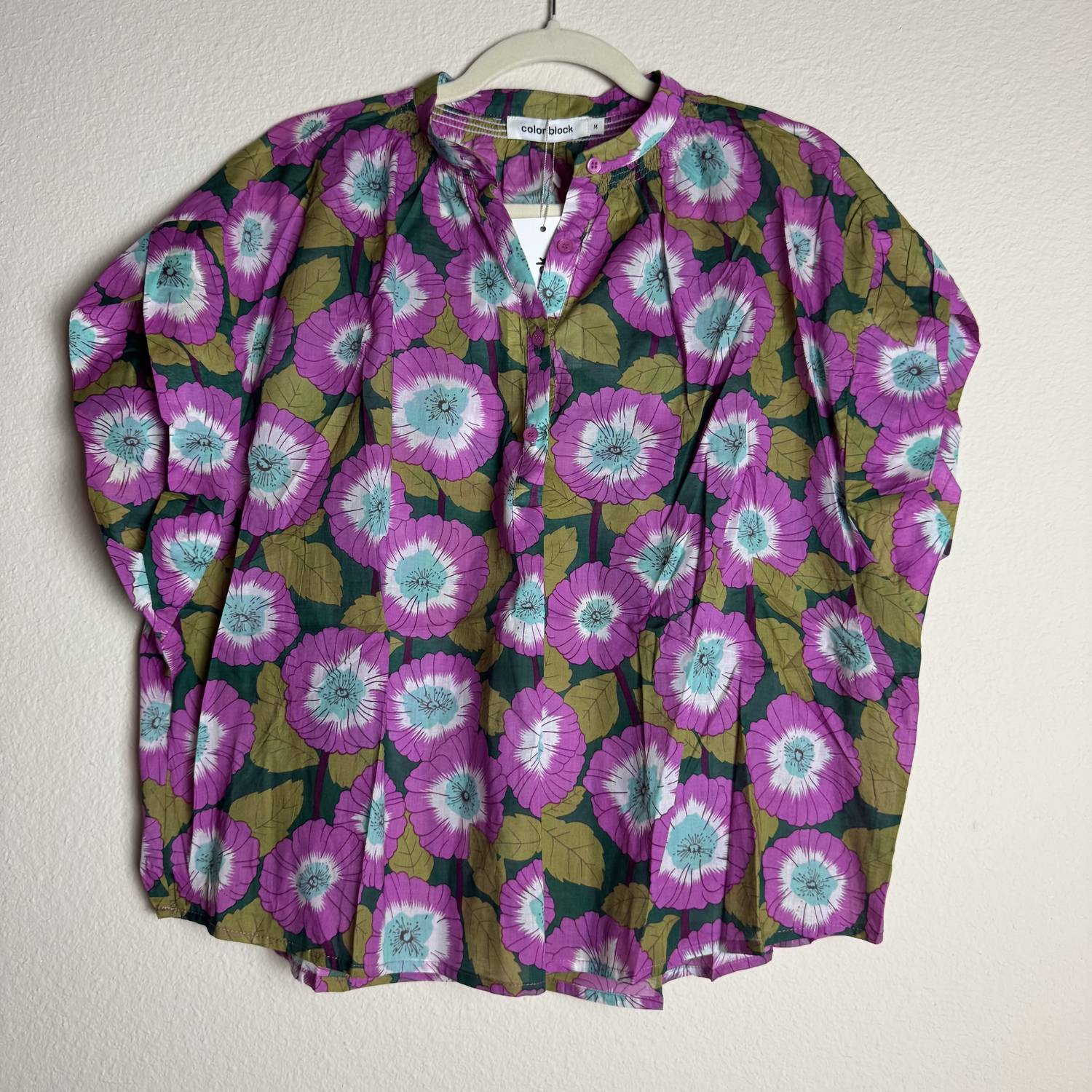 A versatile blouse that works from desk to dinner! Introducing the Floral Sleeveless Quarter Button Front Blouse by Colorblock, a perfect addition to your wardrobe for a touch of bohemian charm. Crafted from 100% cotton, this purple blouse features a delicate floral pattern on a sleeveless design with a V-neckline. Made for effortless style, it includes a quarter button closure for added flair. Ideal for spring vacations and Mother's Day festivities.