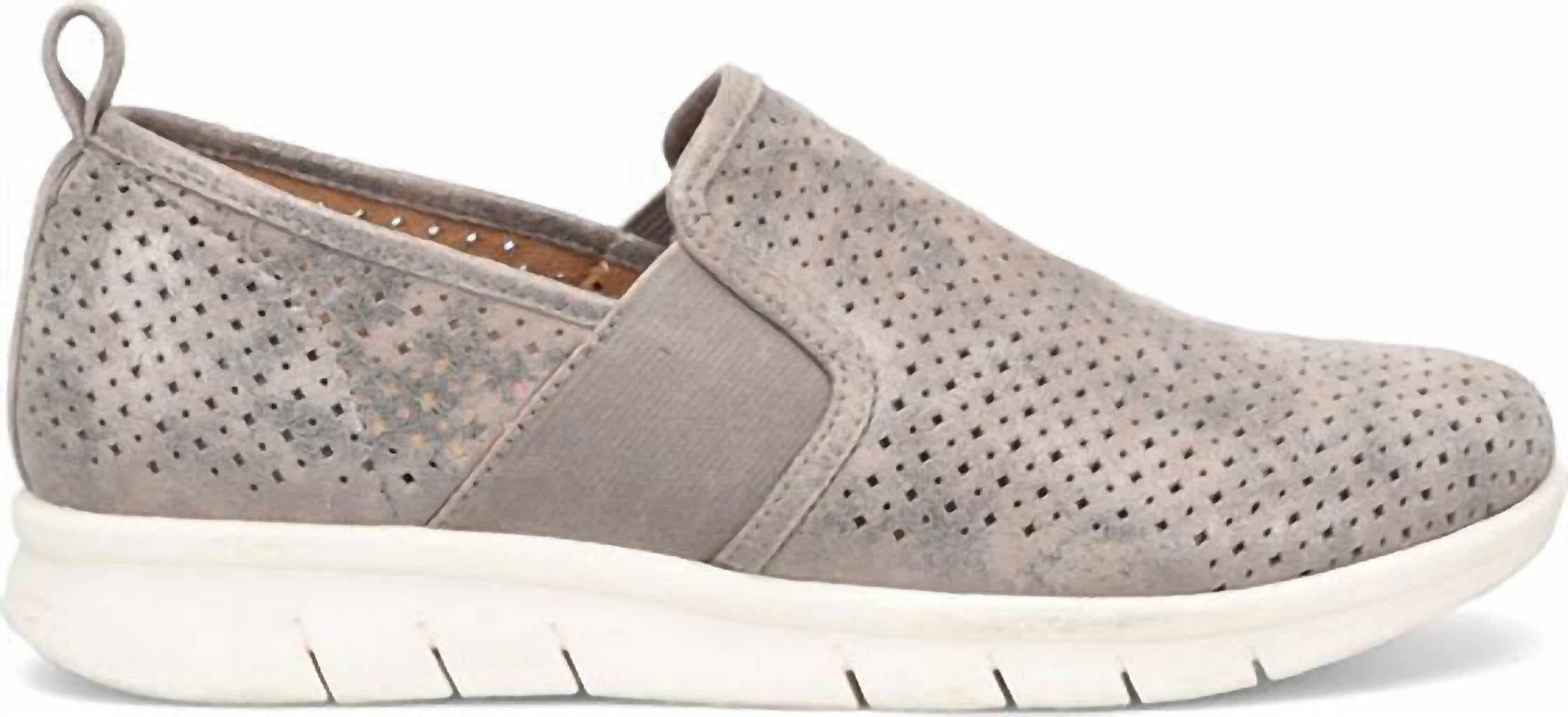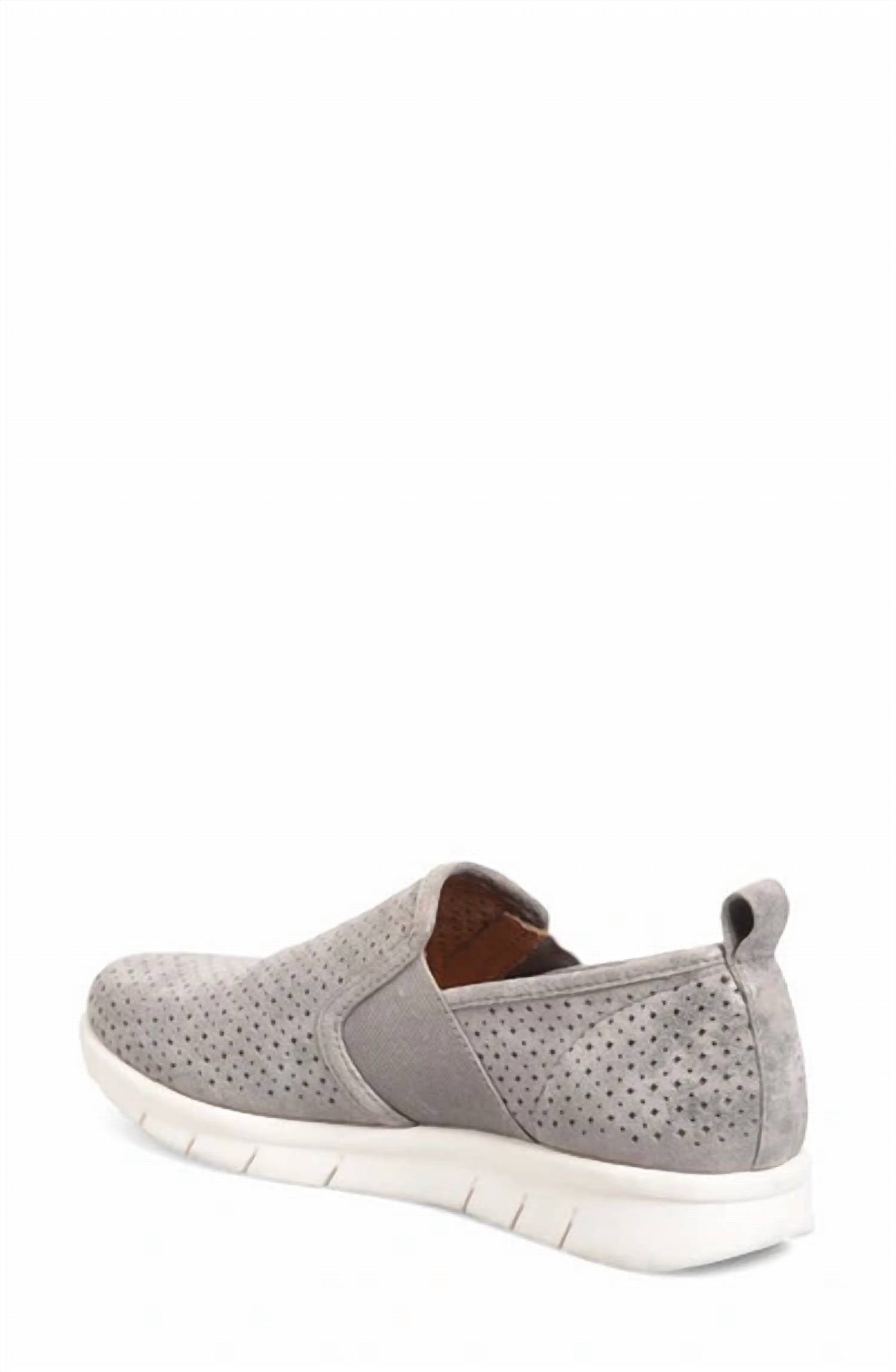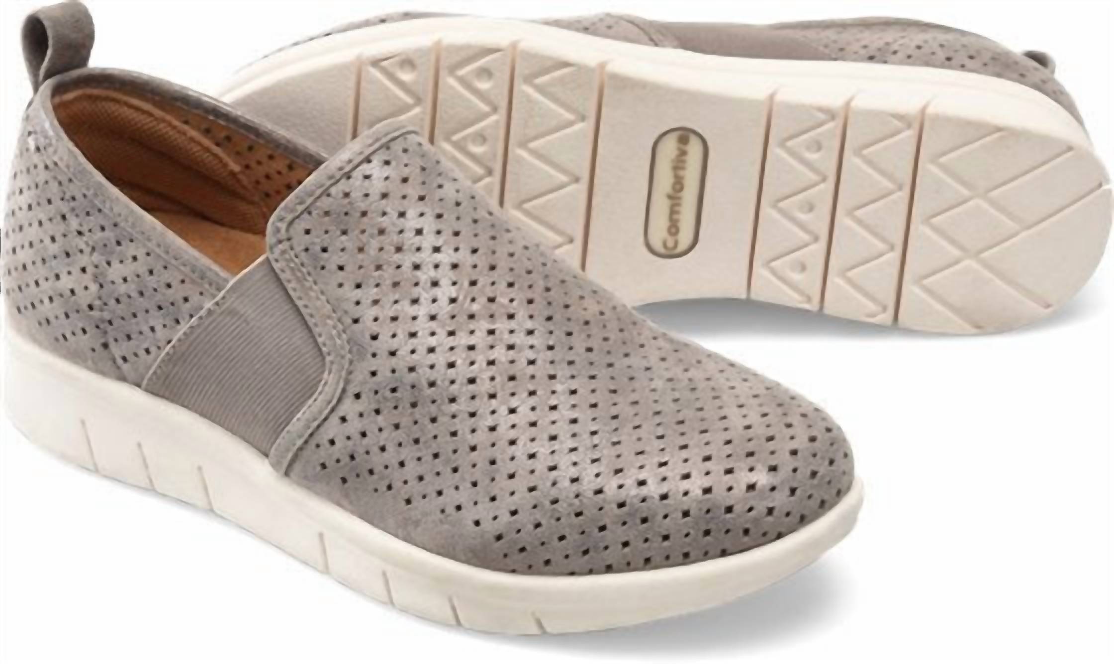 A classic loafer that is both comfortable and polished.Your perfect springtime sneaker, designed with luxe leathers and blissful comfort. The light-and-airy Casey has stylish perforations to help keep you cool - and looking put-together - everywhere you go stomping around Greenbrier County. Offered in Italian suede or distressed metallic suede. Slip-on styling. Heel tab. Stretch goring for a flexible fit. Unlined for a soft, lightweight feel. Microfiber footbed lining. Molded, lightweight and removable Align footbed. Flexible, slip-resistant TPR outsole. Heel Height: 1 1/4 inches.