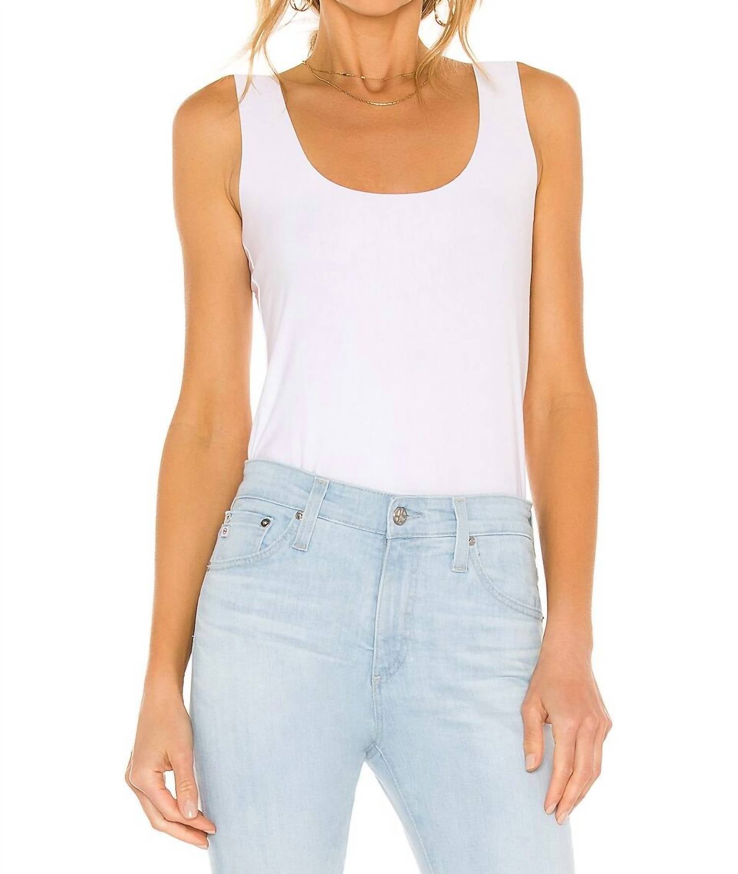 Introducing the Butter Tank by Commando, a versatile piece perfect for your fitness and workout sessions. This sleeveless tank is crafted from 79% micro modal and 21% spandex, with laser-cut edges to ensure a sleek and minimalist fit. Made in the USA, this solid white tank features a chic scoop neckline and a convenient pull-on closure. Care for this easy-to-wear piece with a simple machine wash.