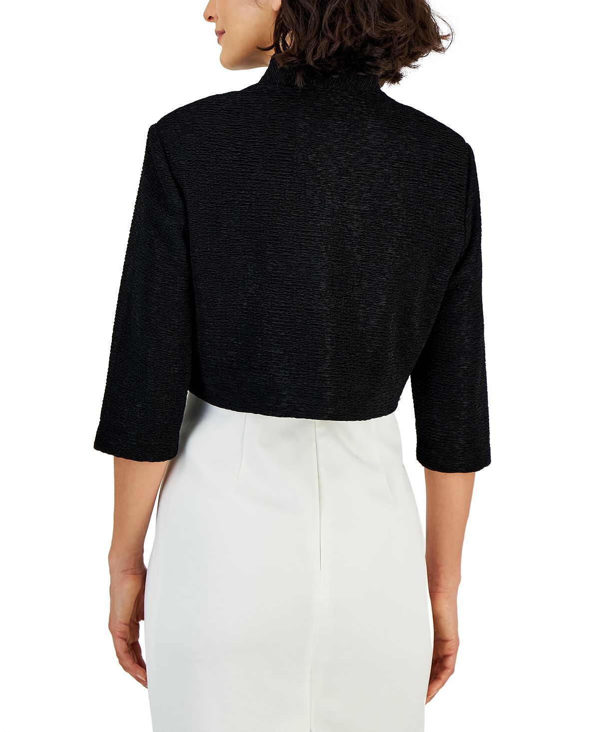 Put the finishing touch on your dressed-up look with this sleek bolero jacket from Connected| designed with an open front and a structured collar
