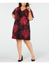 CONNECTED Women's Burgundy Floral Short Sleeve V Neck Knee Length Shift Wear to Work Dress Purple Size 14W