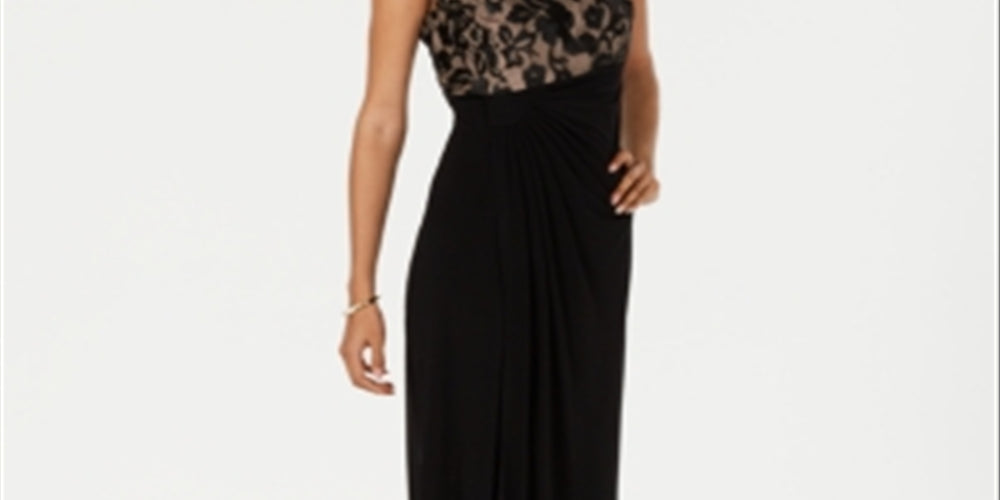 Connected Women's Embroidered Mesh Faux Wrap Gown Black Size 10