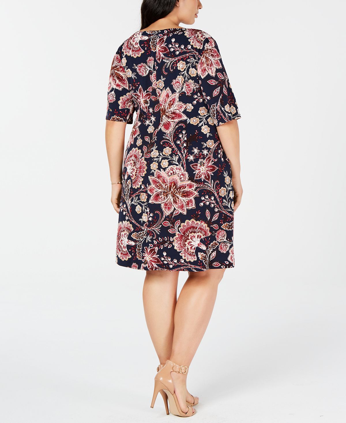 Connected Women's Floral 3/4 Sleeve Jewel Neck Knee Length Sheath Dress Blue Size 18W