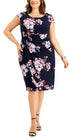 Beautiful blooms and a gathered-detail bodice give a pretty feel to this plus size sheath dress from Connected.| Approx. 41 long from center back neck to hem. Length is based on size 18 and varies 1/4 between sizes| Tailored fit through the chest| waist| and hips; sits close to the body| Jersey-knit; Soft and stretchy| Round neckline; Sheath silhouette