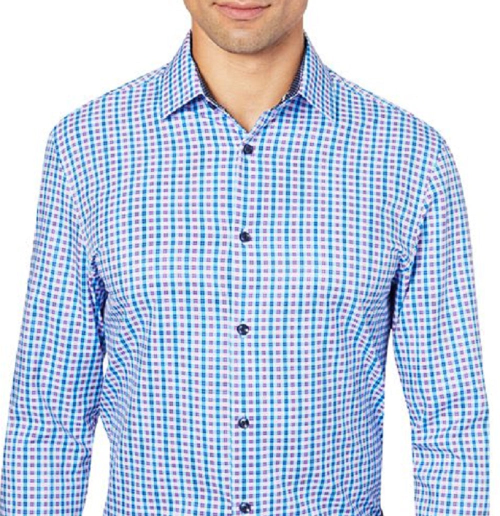Construct Men's Slim Fit Plaid Cooling Comfort Dress Shirt Purple Size Small