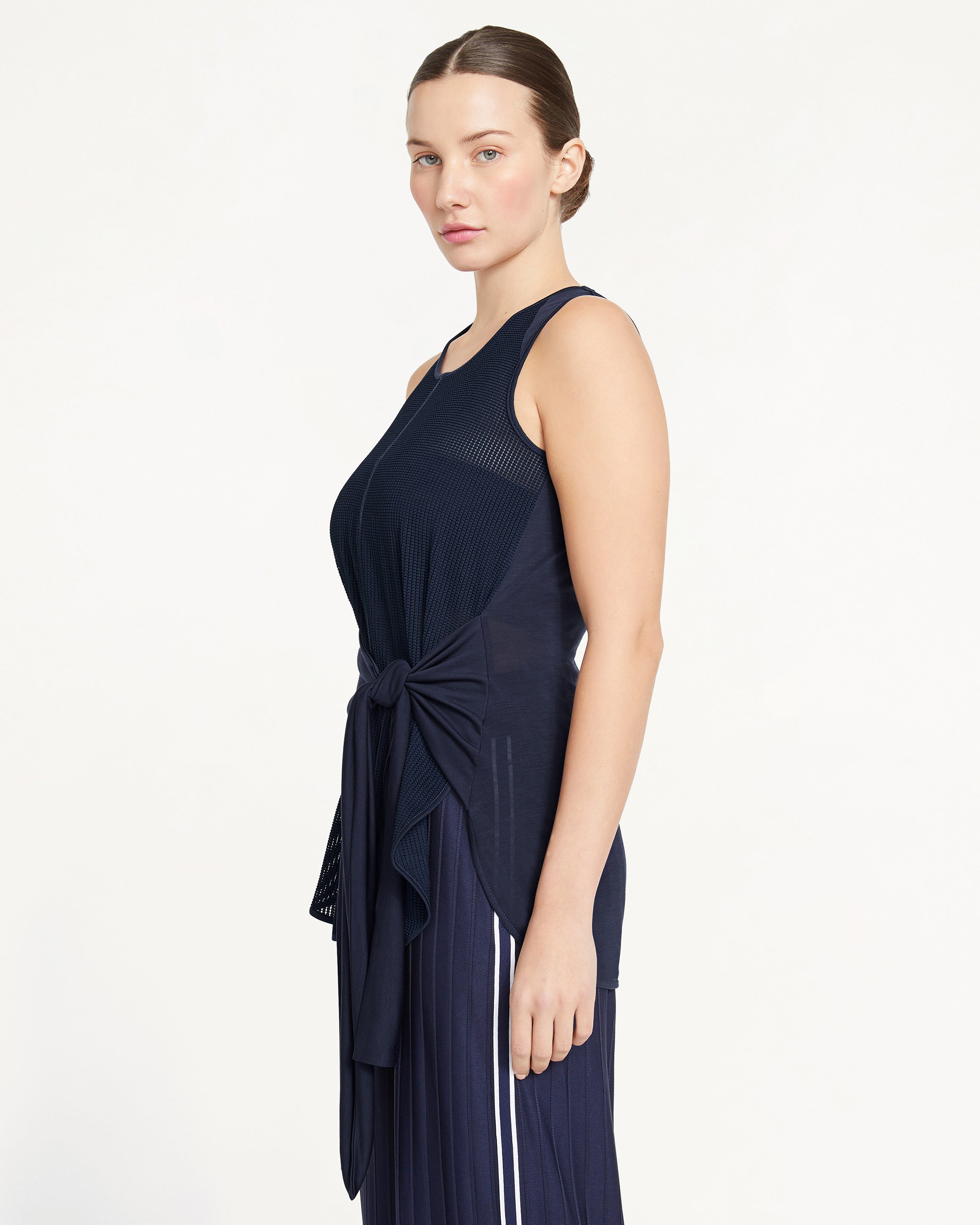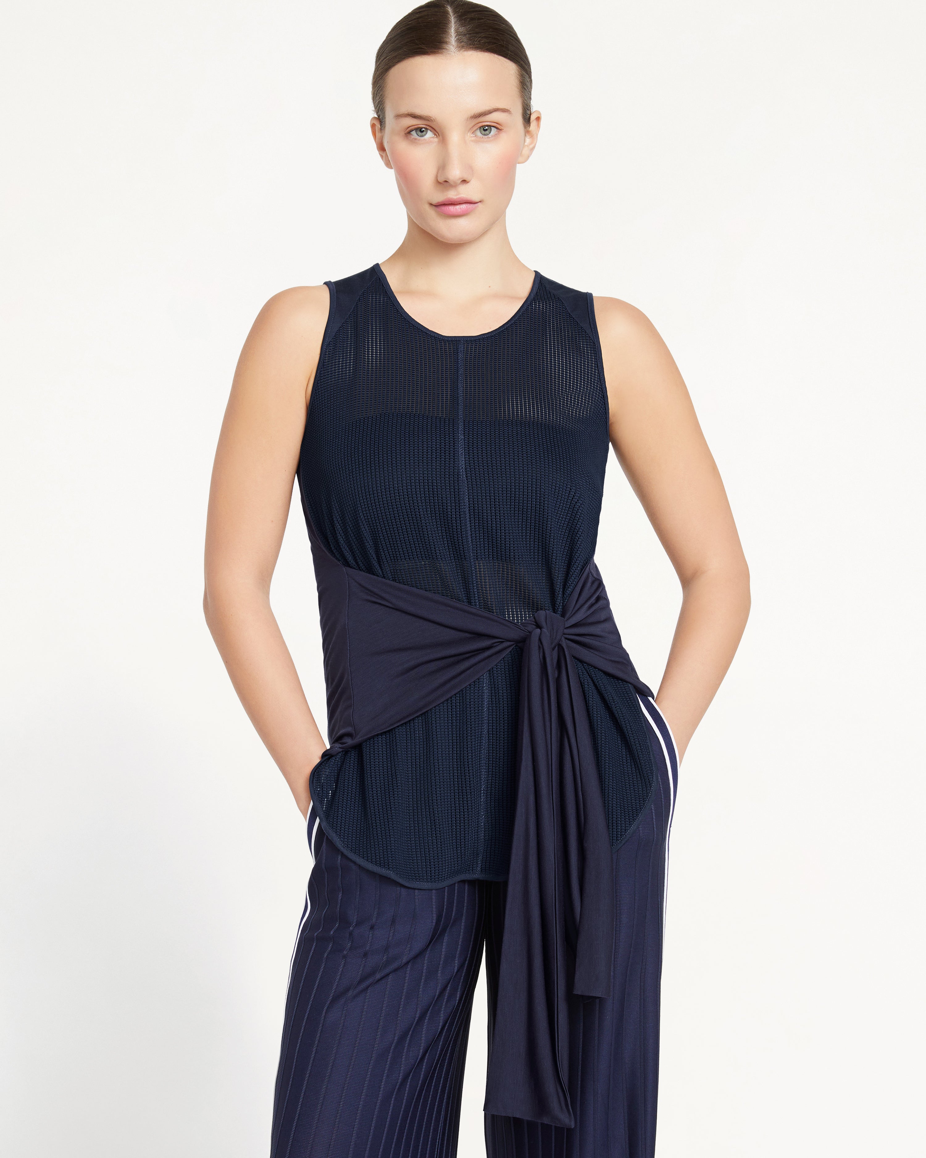 The Convertible Mesh Wrap Tank is an update essential, combining sheer mesh and jersey with a slim silhouette for an ultra-flattering fit.