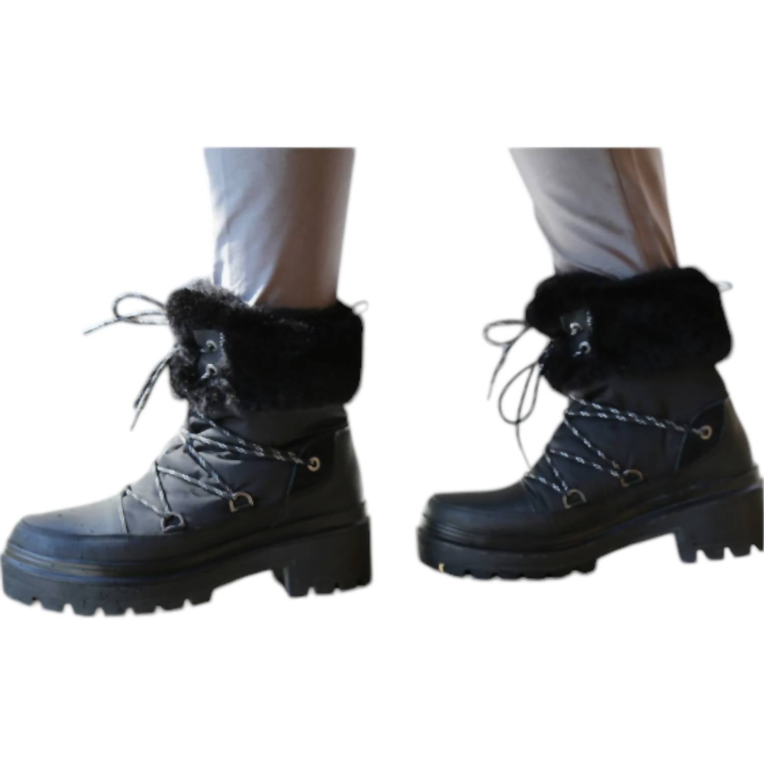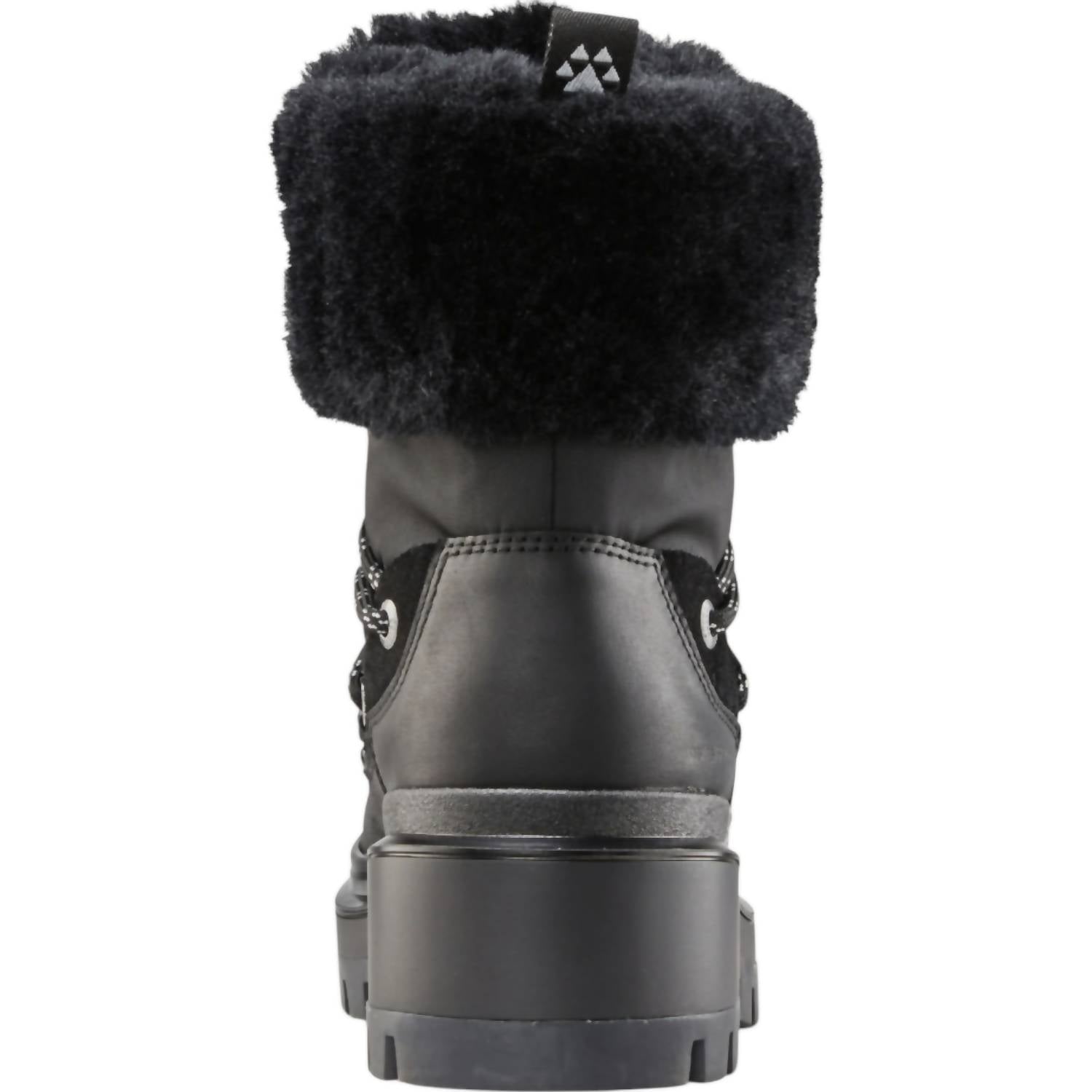 Step confidently into the cold season. Designed for both style and functionality. Waterproof winter and rain boots. Feature a black leather, textile, and faux-shearling upper with a cozy polar-fleece lining. Ensuring your feet stay warm and dry. Block heel and round toe shape provide comfort and stability. Removable cushioned insole offers customizable support. Temperature rated to withstand conditions as low as -11°F/-24°C. Perfect companion for chilly weather adventures.