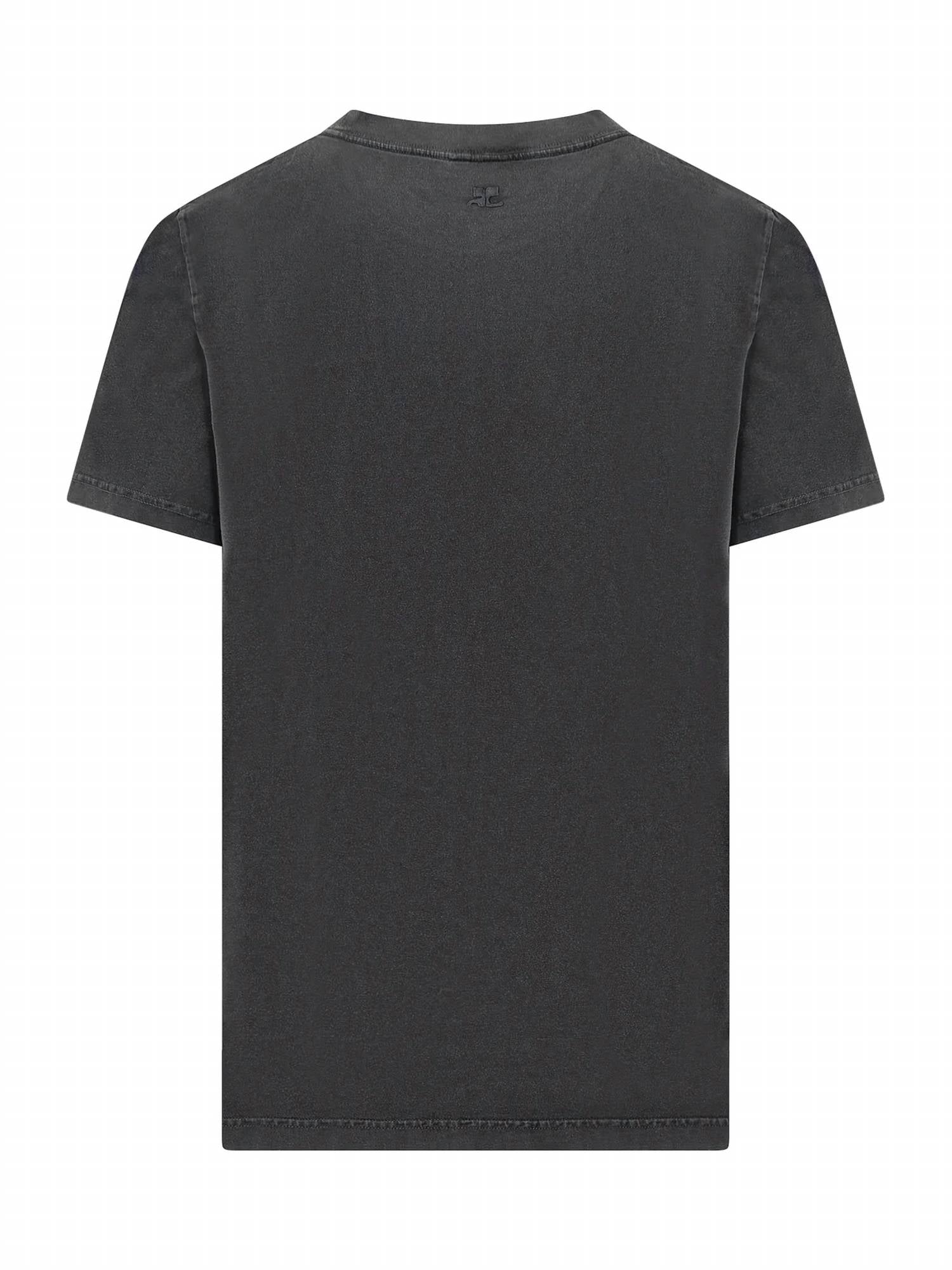Introducing the Ac Crewneck T-shirt by Courreges, a stylish staple in stonewashed grey perfect for the summer season. This solid, short-sleeved tee is crafted from 100% cotton and features the embroidered AC logo on the back. Made in Portugal and designed with a crewneck, it offers a comfortable pull-on closure. A classic addition to any wardrobe, this T-shirt seamlessly blends casual ease with signature branding.