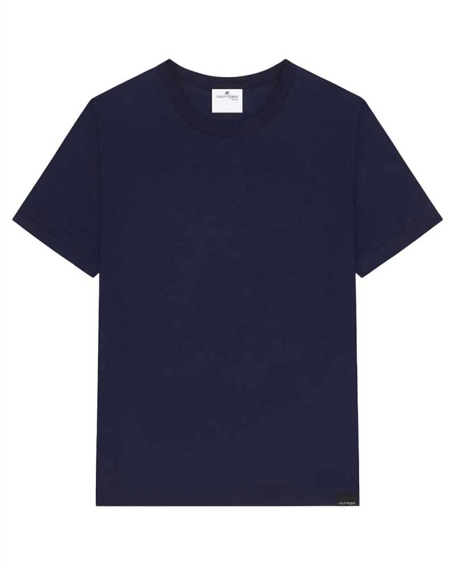 Elevate your summer wardrobe with the Courreges Men's AC Classic T-shirt in timeless navy. This straight short-sleeved tee, crafted from 100% cotton, showcases a subtle embroidered AC logo on the back for a touch of sophistication. Made in Portugal, it features a crewneck and is designed for effortless pull-on wear. With its solid pattern and versatile style, this T-shirt is a must-have for any casual occasion.