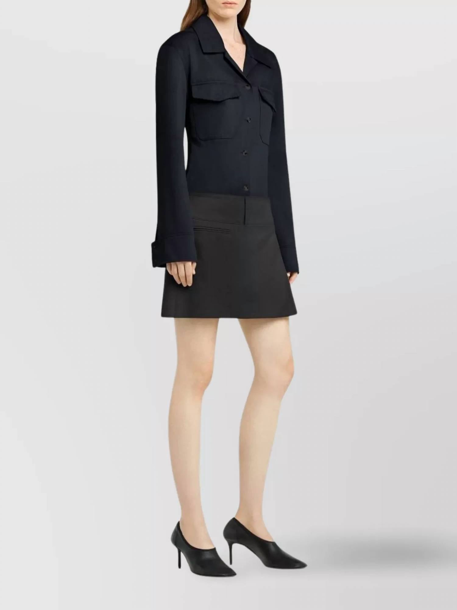 A classic button down shirt that will never go out of style. Elevate your wardrobe with the Utility Polycotton Shirt by Courrèges, a French fashion statement blending structure with allure in a sophisticated navy hue. Crafted with 65% polyester and 35% cotton, this long sleeve shirt features a button closure and chic button cuffs. Two front chest pockets adorned with a tonal Courrèges logo add a trendy touch. Made in Portugal, it requires dry cleaning, ensuring it remains impeccable through every wear.