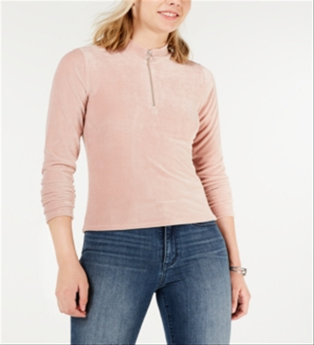 crave fame juniors' corduroy mock-neck zip-up top juniors juniors' clothing - tops ()