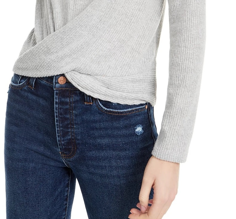 Crave Fame Juniors' Cozy Twist-Front Turtleneck Top Silver Size X-Small