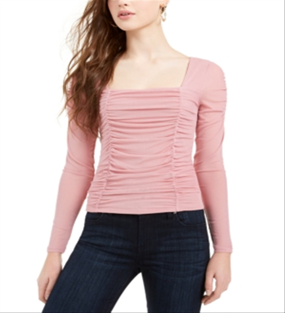 crave fame juniors' ruched mesh top juniors juniors' clothing - tops
