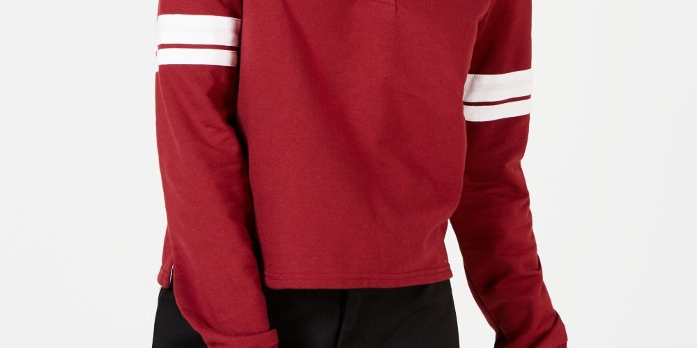 Crave Fame Juniors' Striped-Sleeve Rugby Polo Shirt Brown Size Large