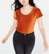 Crave Fame Women's Corduroy Short Sleeve Scoop Neck Top Orange Size Small