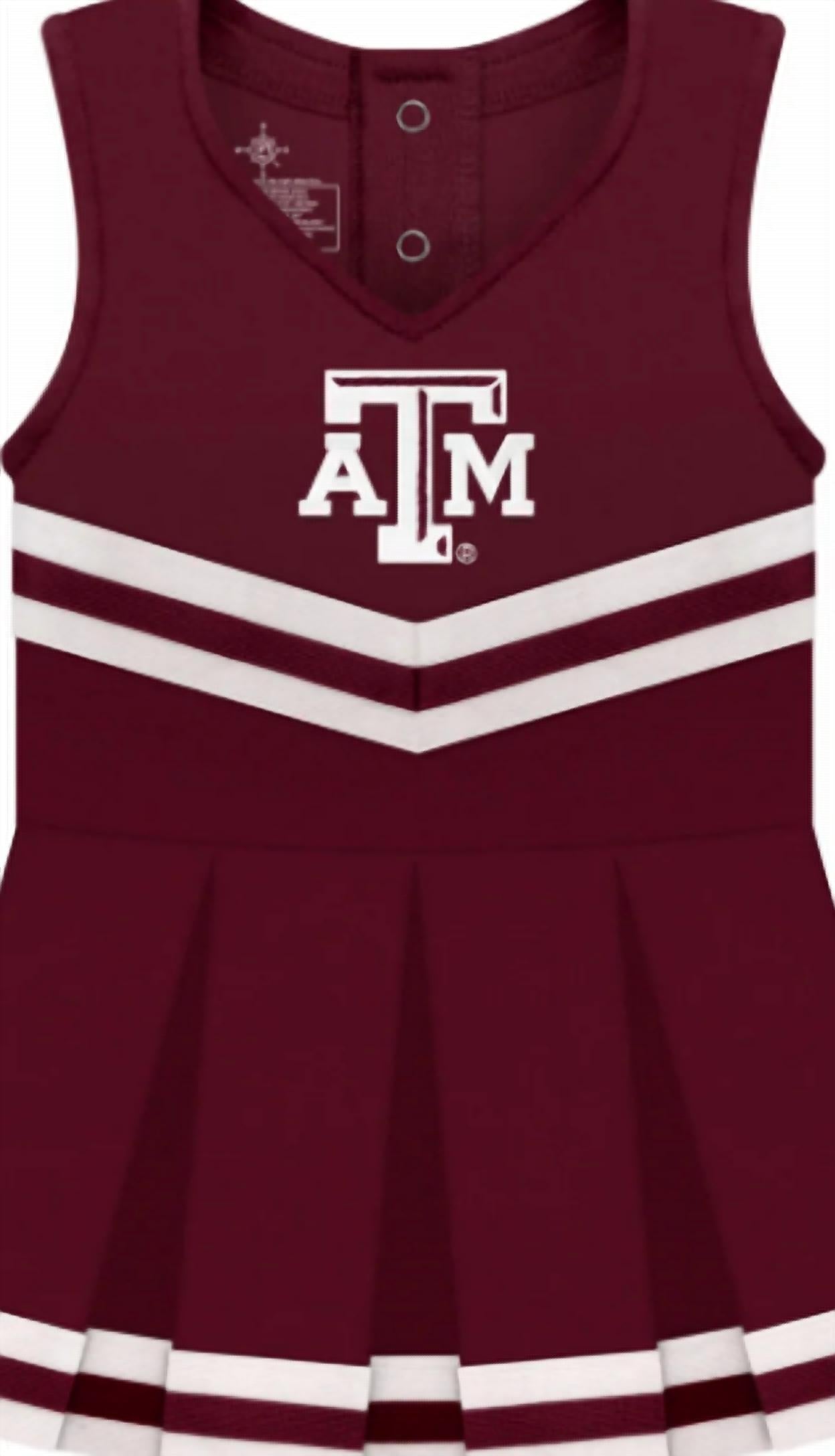 Root for your team with the Girl's Cheer Bodysuit Dress by Creative Knitwear, crafted in the spirited Texas Tech Red. This high-quality dress is composed of 100% premium cotton, ensuring comfort and freedom of movement for your little cheerleader to dance and cheer. It features convenient 2 snap closures on the backside and additional snap closures beneath the pleated skirt for quick outfit changes. Perfect for game days, this officially licensed dress boasts team embroidery for that extra touch of collegiate pride.