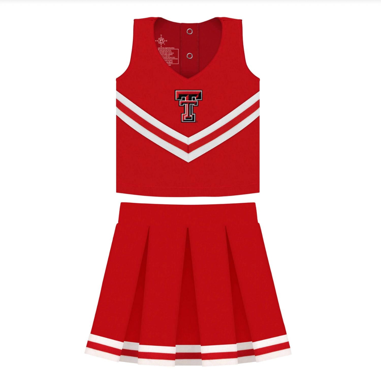 Get your young fan game-day ready with the Girl's Cheerleading Outfit by Creative Knitwear, tailored for spirited performances. This children's cheerleading set, in University Of Texas Burnt Orange, includes a top, a pleated skirt with a side zipper, and a matching bloomer, all crafted from 100% polyester. Designed to be soft and durable, this outfit supports energetic jumping, dancing, and cheering for the Longhorns. Proudly featuring official team embroidery, it's the perfect way to show team spirit.