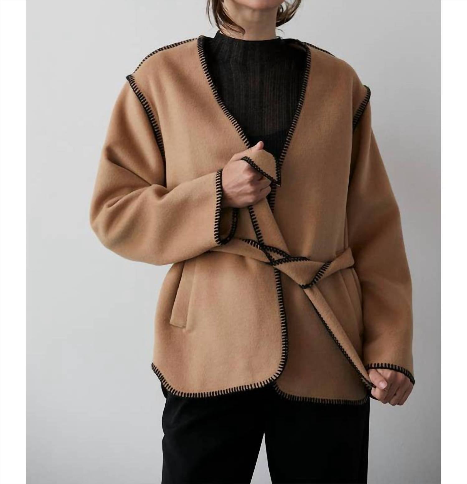 Throw this adorable cardigan over any cami or tank top. Embrace timeless elegance with the Kendra Wool Blend Wrap Coat by CRESCENT, crafted in a sophisticated camel hue. This minimalist piece boasts long sleeves and a chic V-neck, enhancing its timeless appeal. Made from a luxurious wool blend, it features a convenient tie closure and practical pockets. Dry clean only.