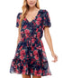 Take your brunch look to the next level with this super-pretty chiffon dress| styled in a gorgeous floral print and trimwith a flowing ruffled hem| from Crystal Doll. | Approx. 33-1/2 long from center back neck to hem. Length varies 1/2 between sizes| Fitted through the chest and waist; flared and flowing skirt| Chiffon; Smooth