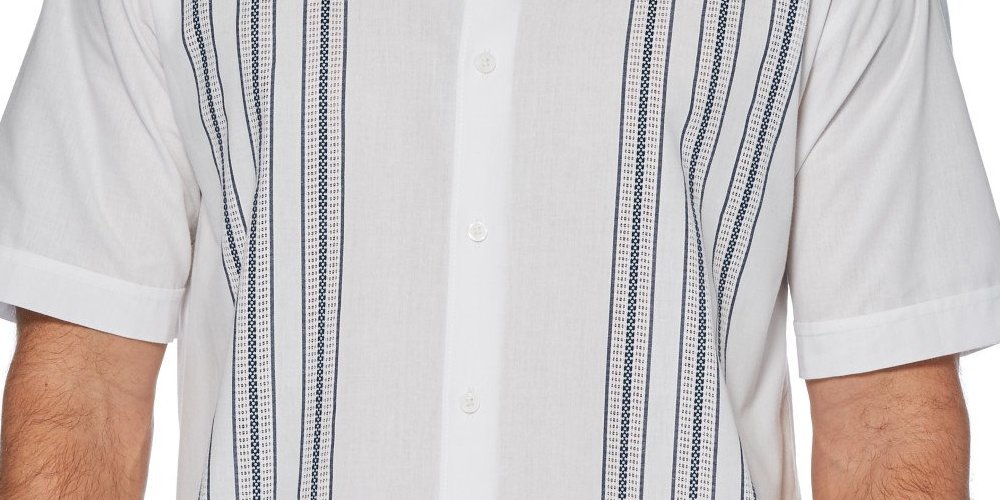 Cubavera Men's Short Sleeve Panel Button Down Shirt White Size Large