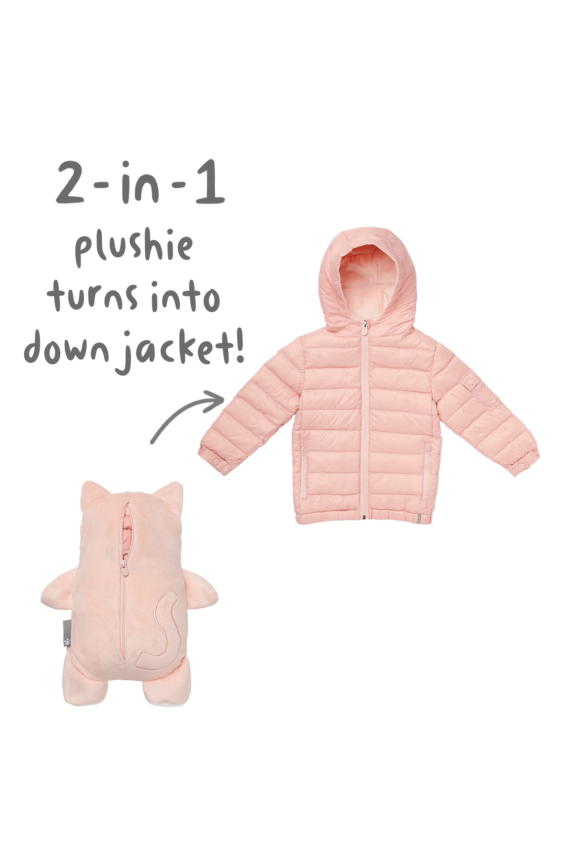 Cubcoats Girl's Kali 2-in-1 Stuffed Animal & Hooded Down Jacket Pink